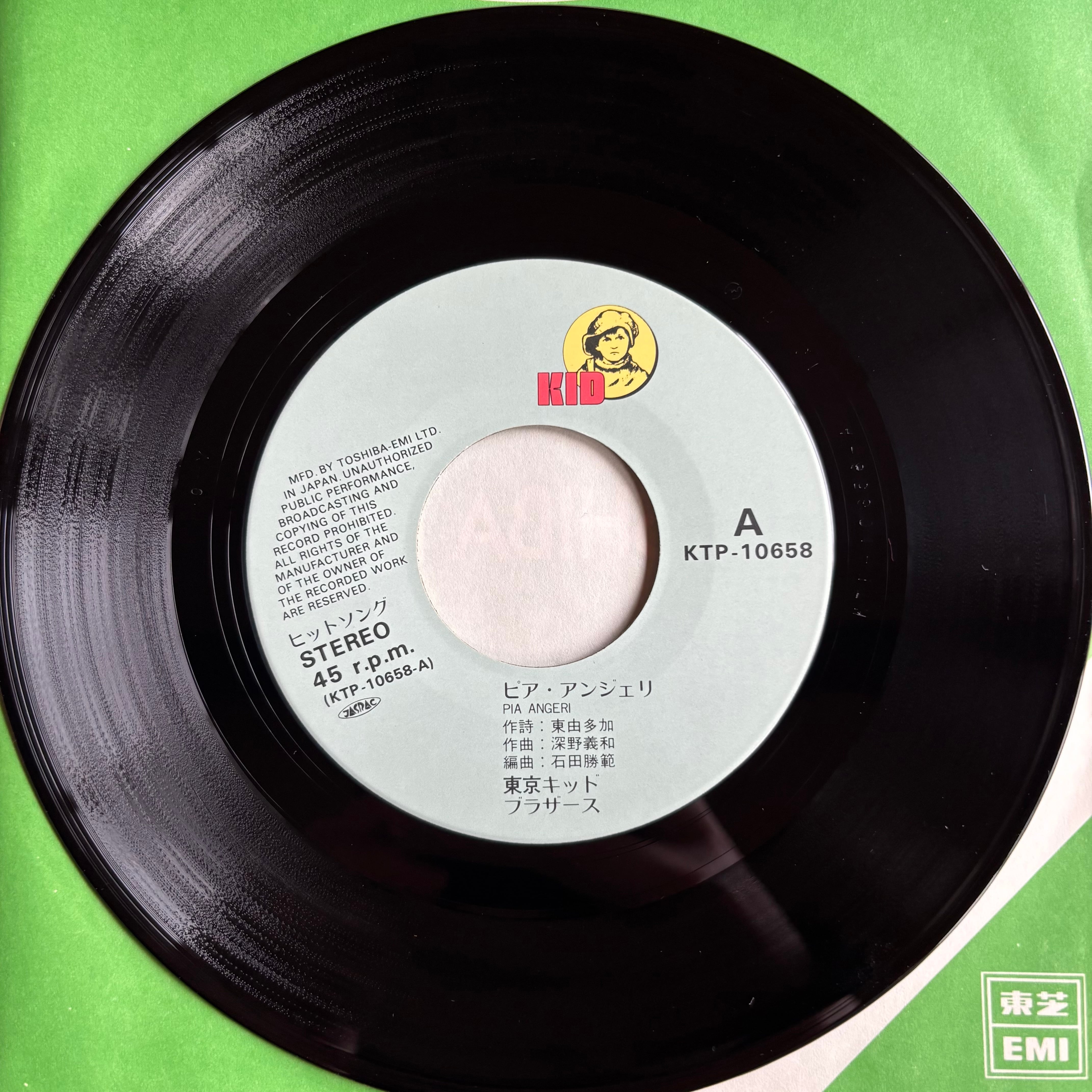 東京キッドブラザーズのアルバム『哀しみのキッチン』からのシングル。石田勝範編曲の"ピア・アンジェリ"と小椋佳作詞作曲、矢野立美編曲の"哀しみのキッチン"をカップリング!
