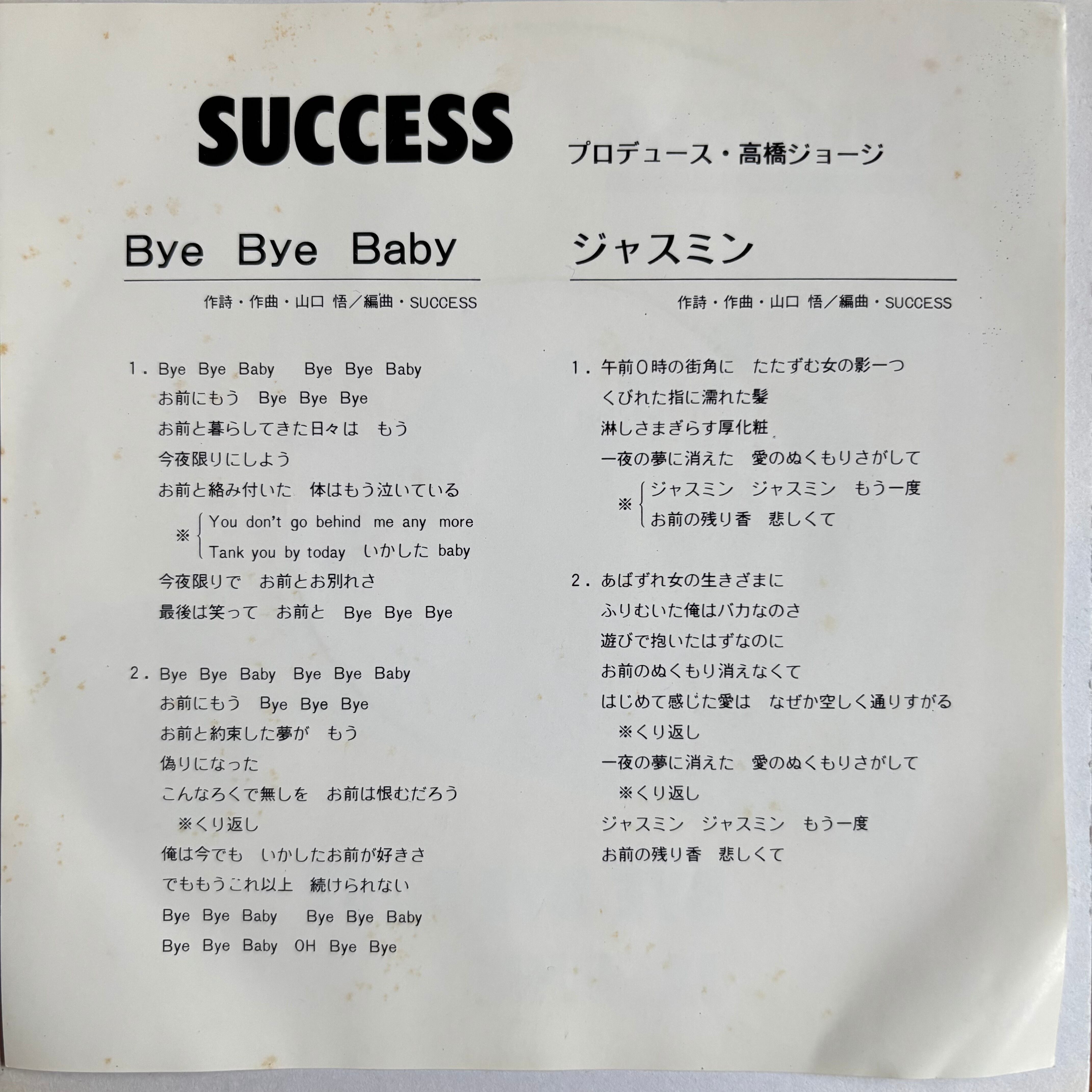 SUCCESS / BYE BYE BABY / JASMINE