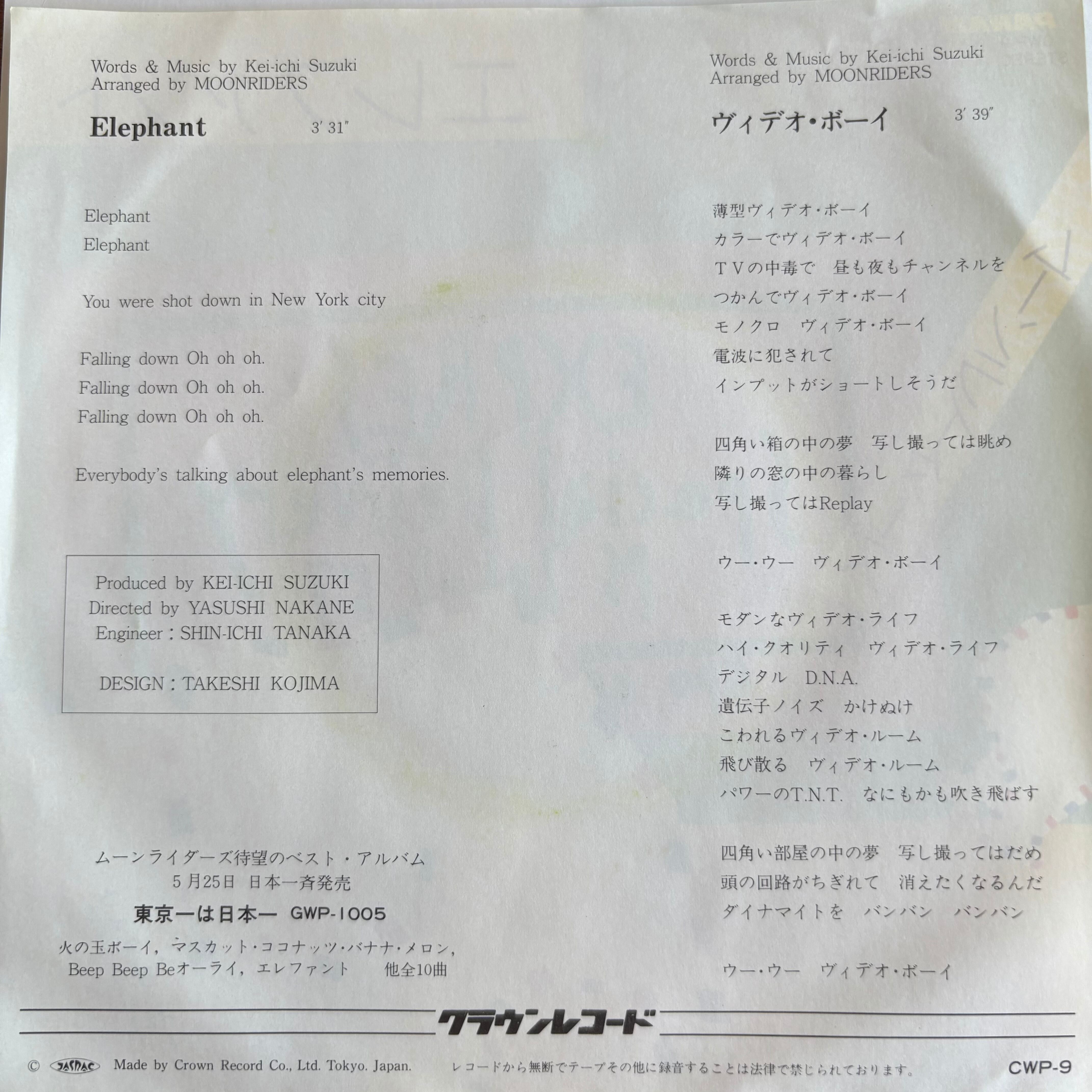 ムーンライダーズ / エレファント / ヴィデオ・ボーイ