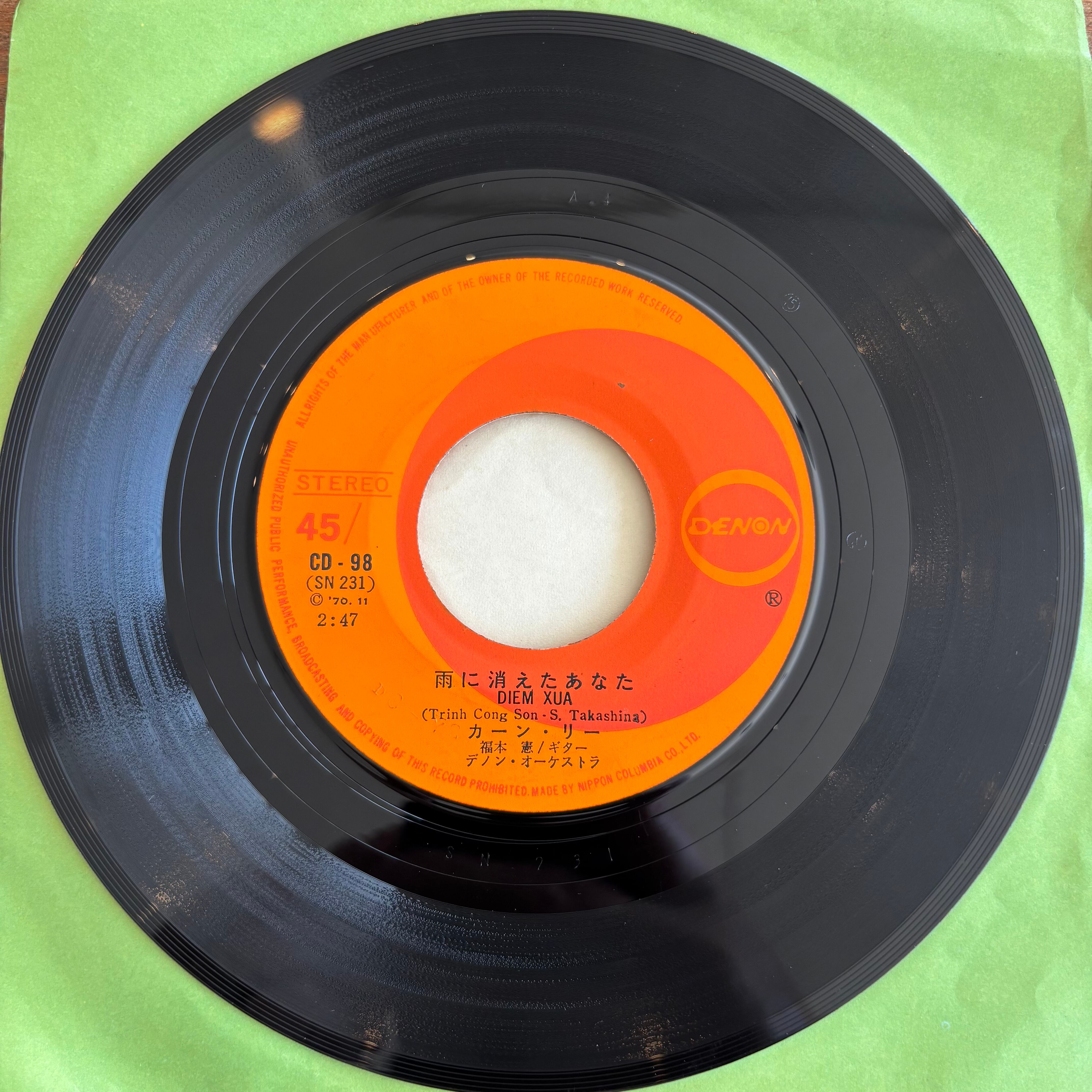 ベトナムの歌手カーン・リーによる日本語歌唱作品。A面は"雨に消えたあなた"、B面にはメロウフォーク"ユエの子守唄"をカップリング。