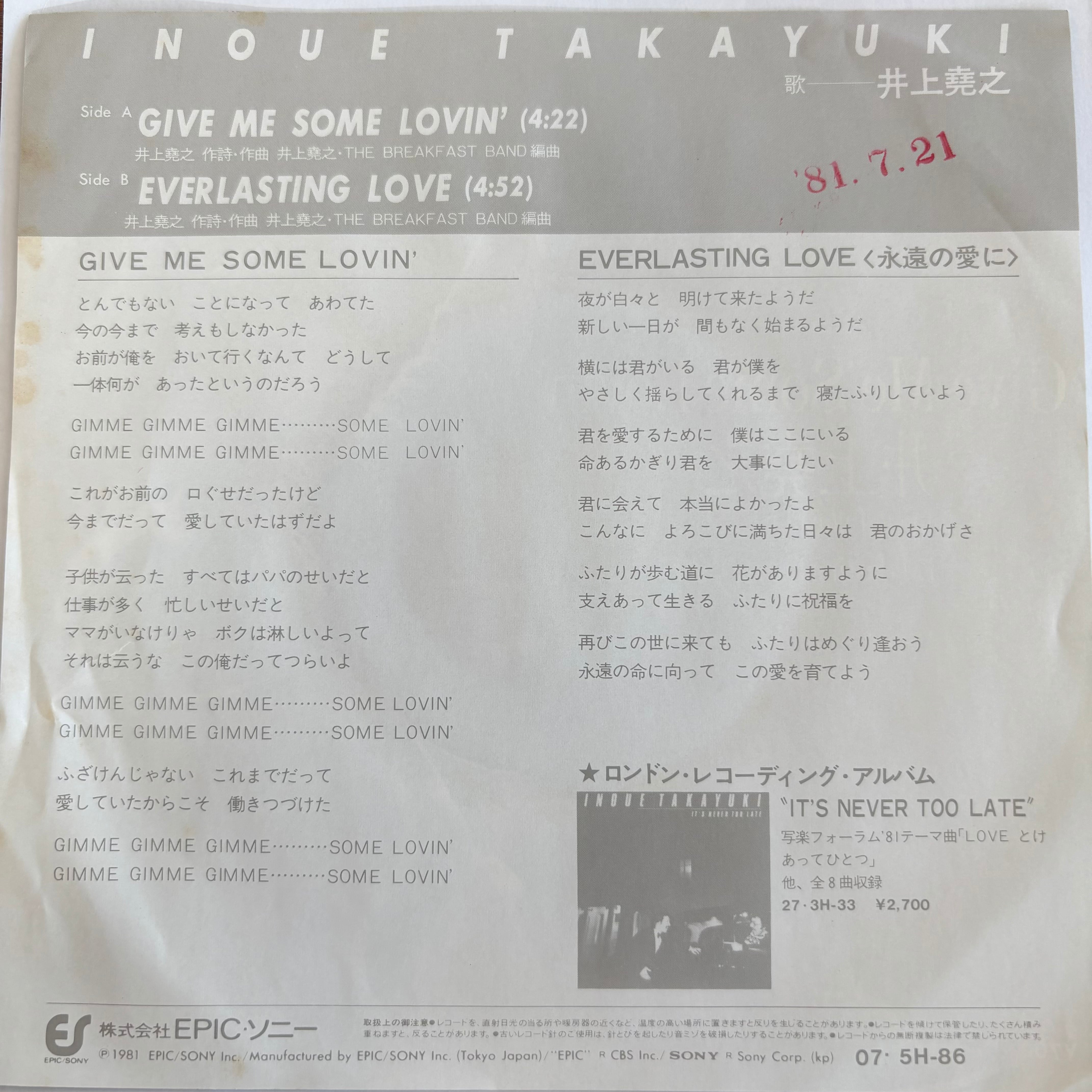 井上堯之 / GIVE ME SOME LOVIN' / EVERLASTING LOVE