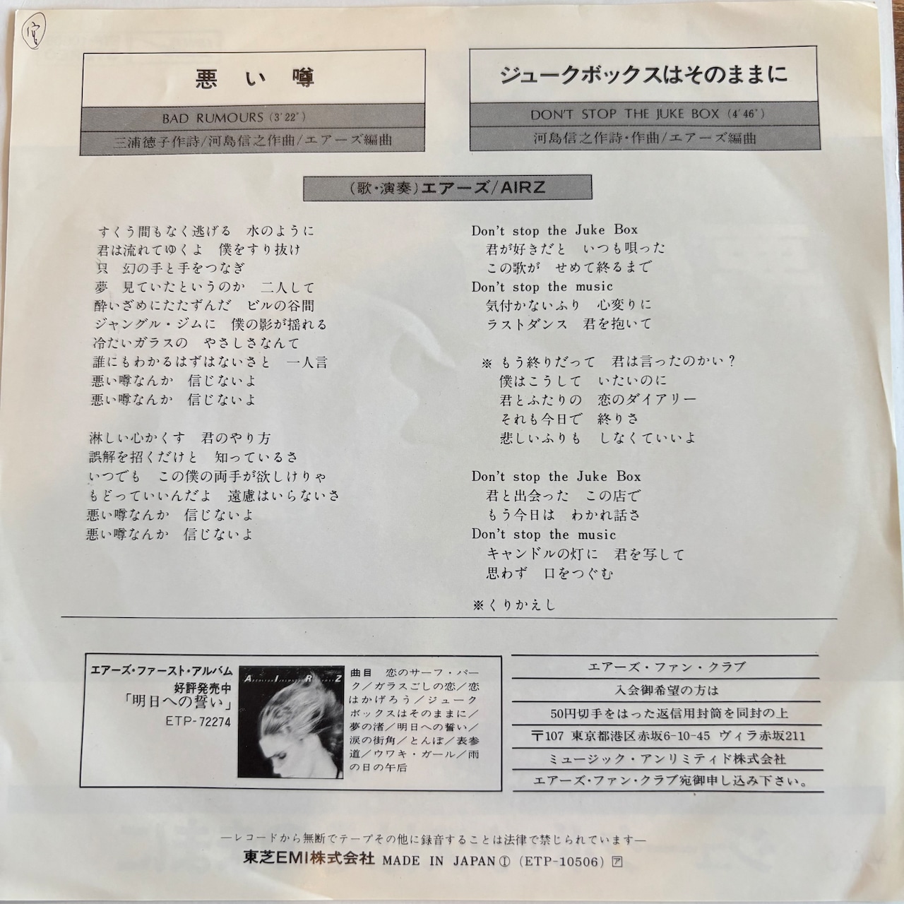 エアーズ / 悪い噂 / ジュークボックスはそのままに