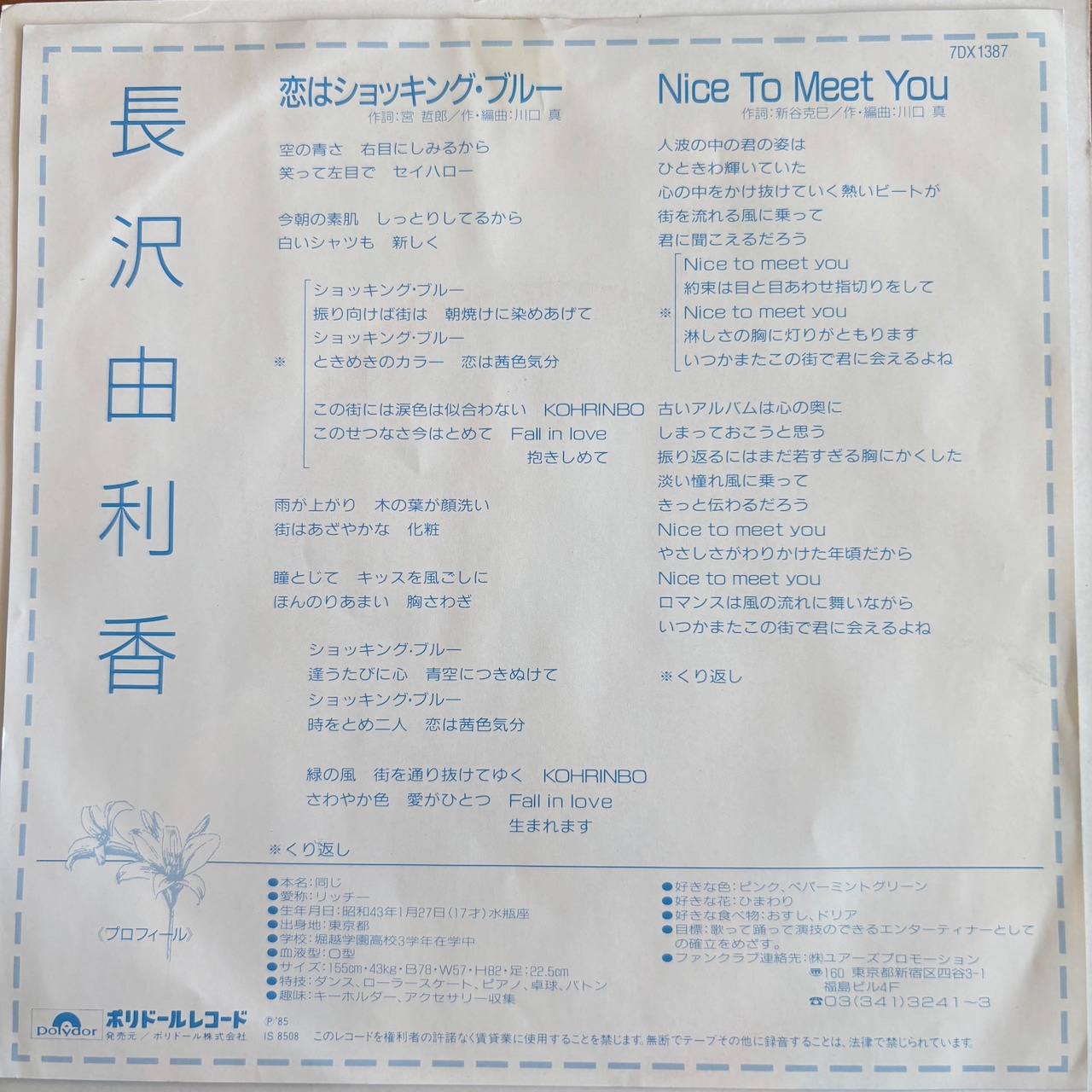 長沢由利香 / 恋はショッキング・ブルー / Nice To Meet You