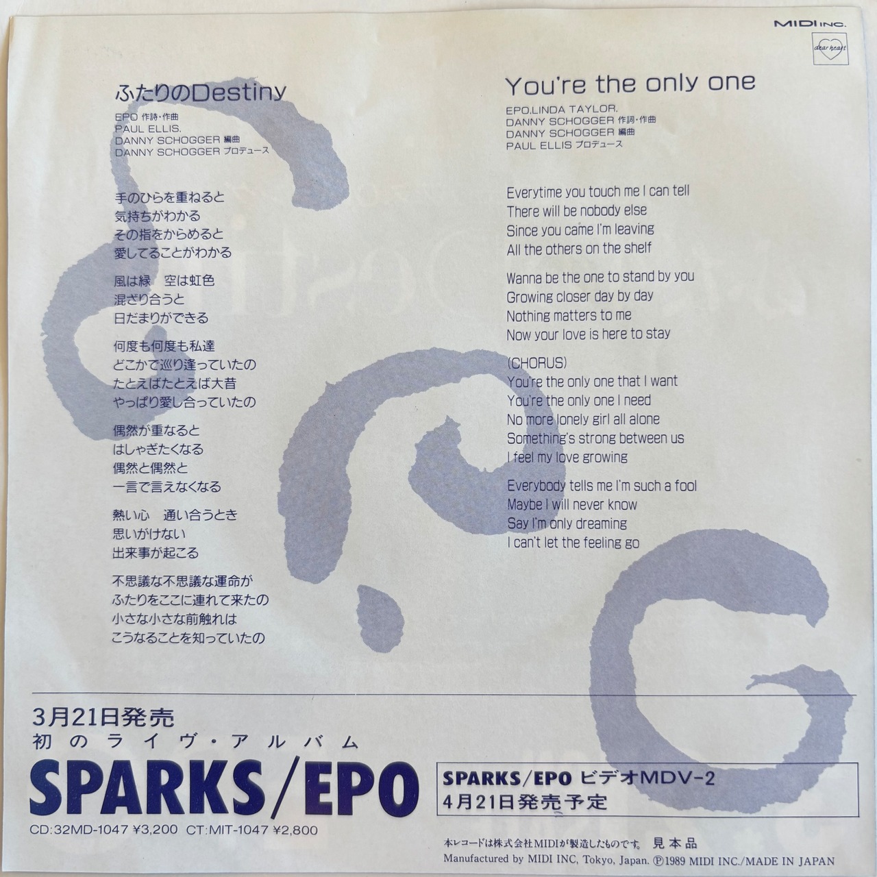 EPO (エポ) / ふたりのDESTINY / YOU'RE THE ONLY ONE