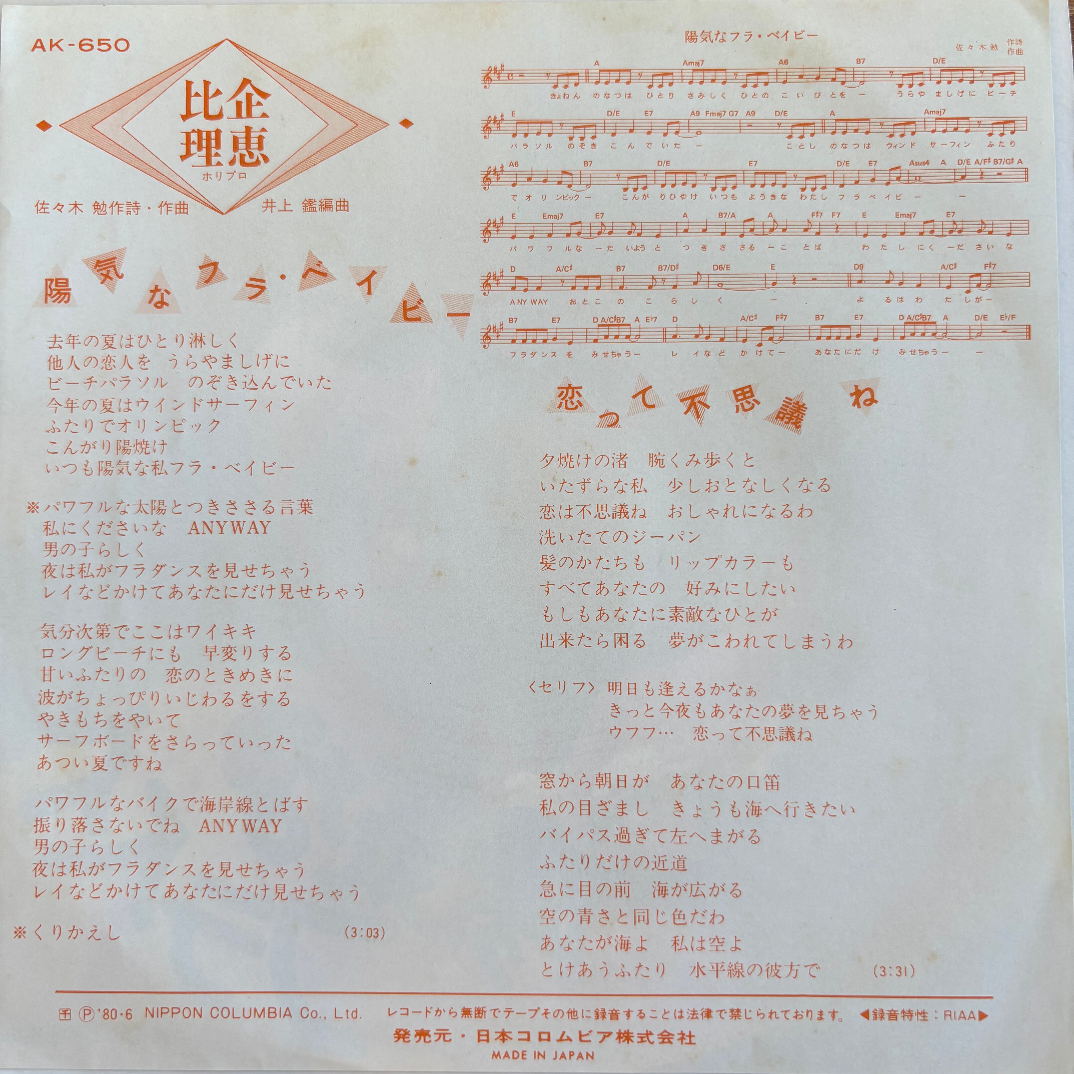比企理恵 / 陽気なフラ・ベイビー / 恋って不思議ね