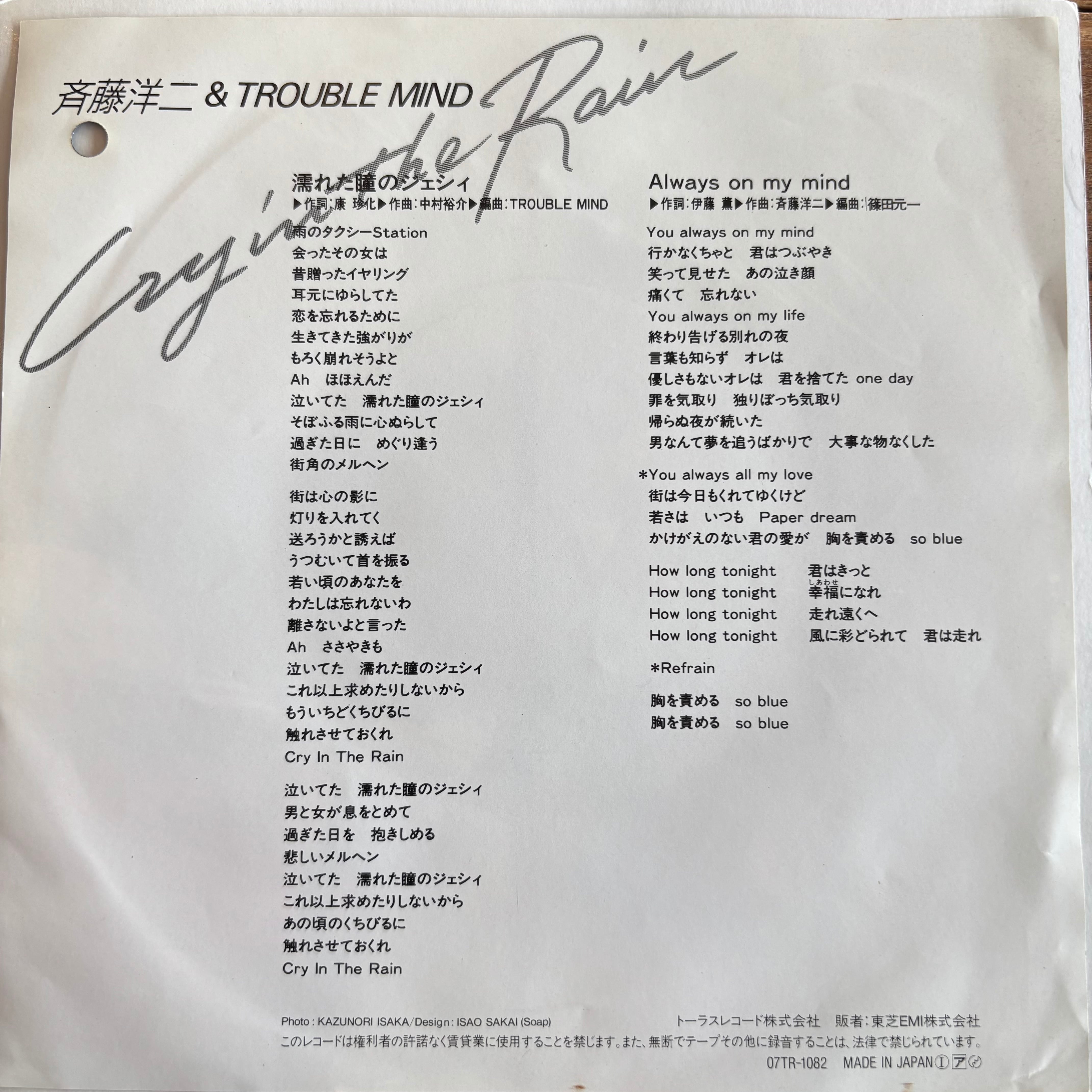 斉藤洋二 & TROUBLE MIND / 濡れた瞳のジェシィ / ALWAYS ON MY MIND