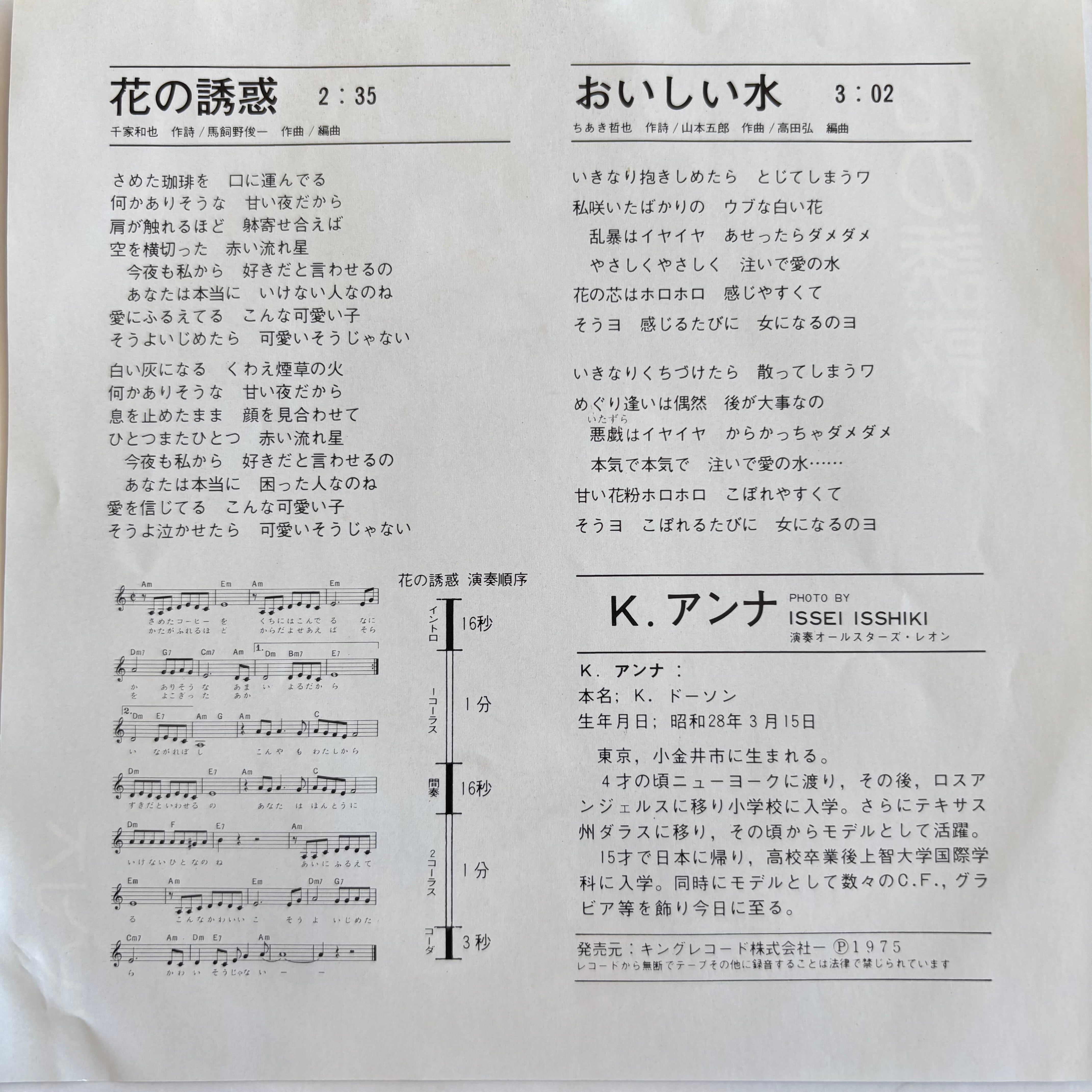 K・アンナ / 花の誘惑 / おいしい水