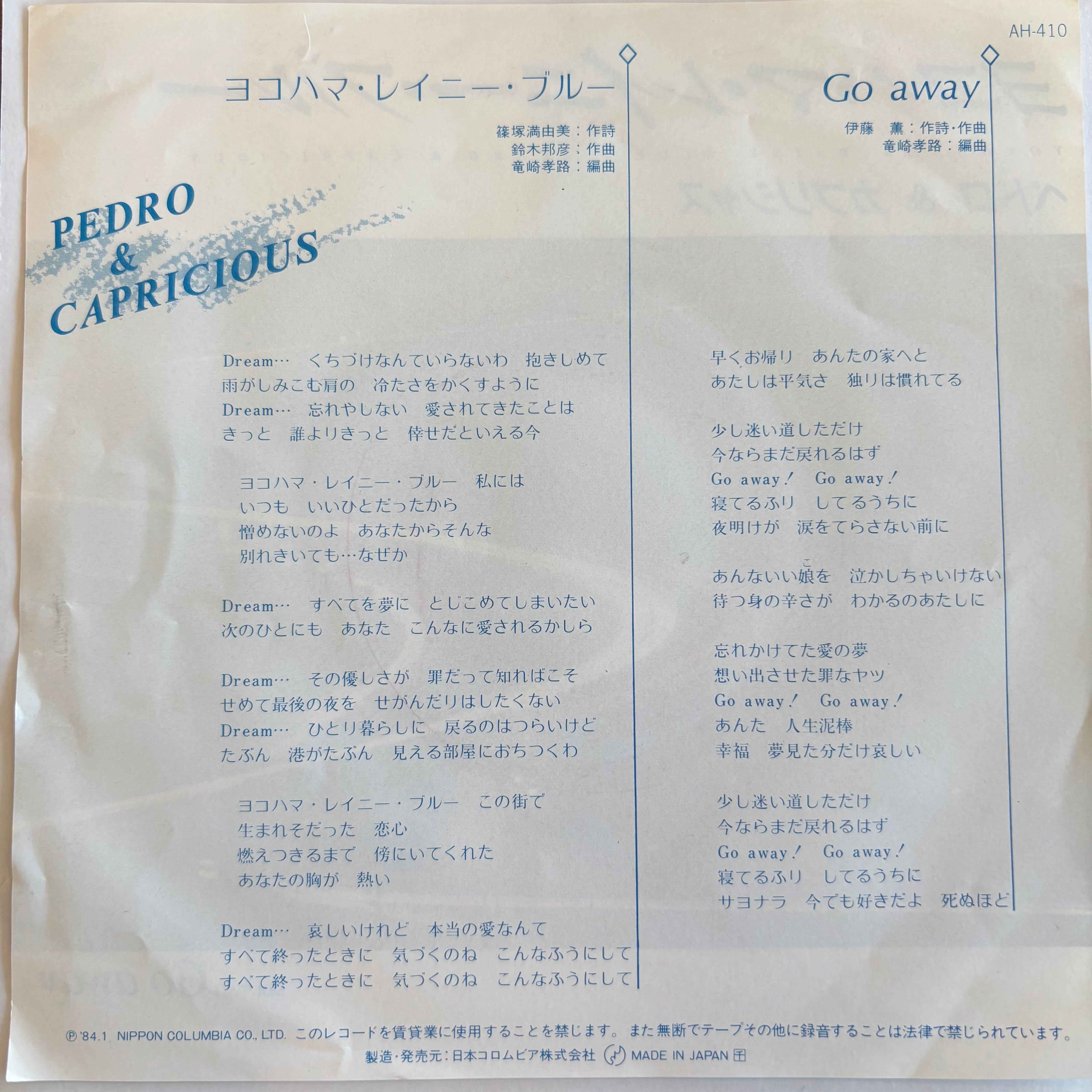 ペドロ&カプリシャス / ヨコハマ・レイニー・ブルー / GO AWAY