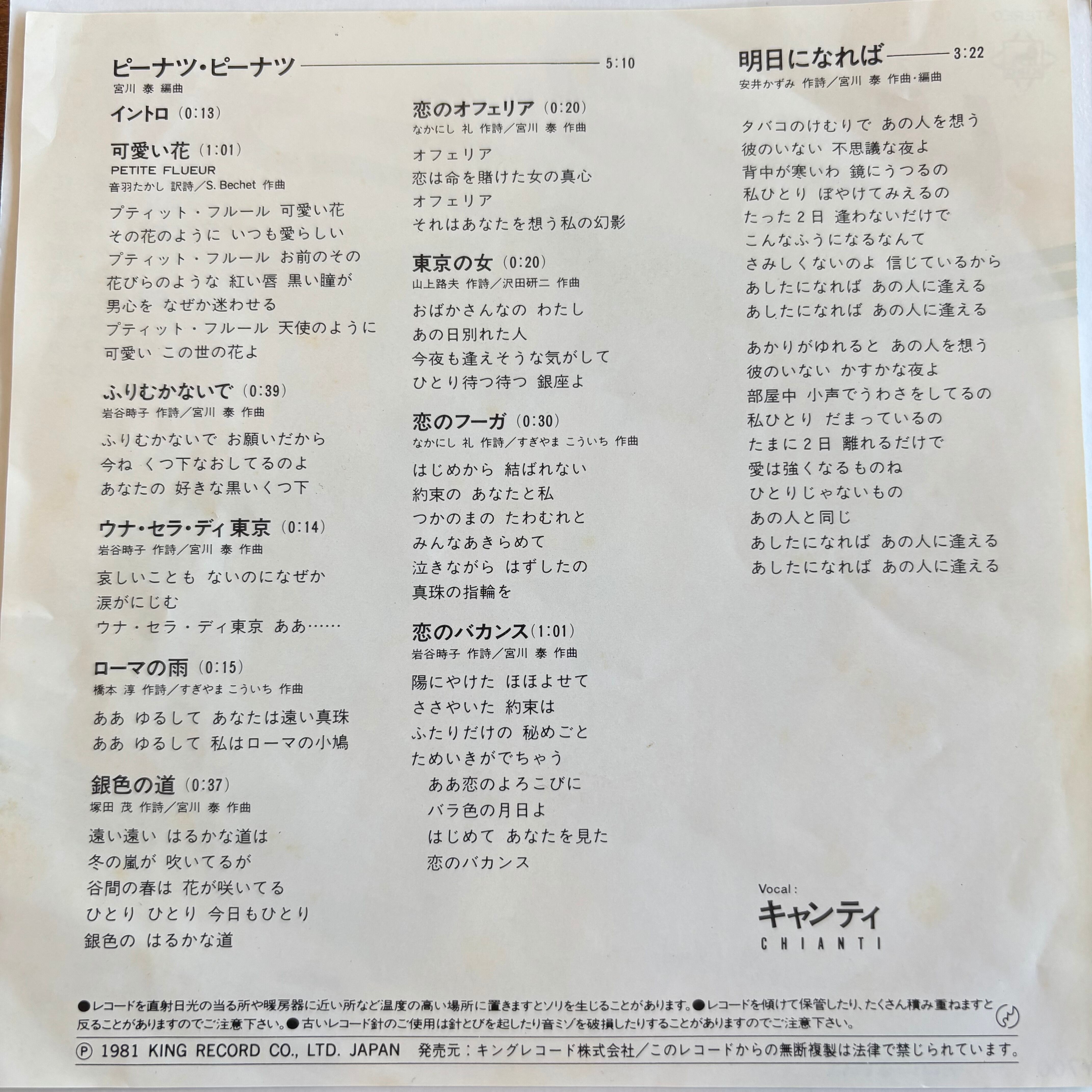キャンティ / ピーナツ・ピーナツ / 明日になれば