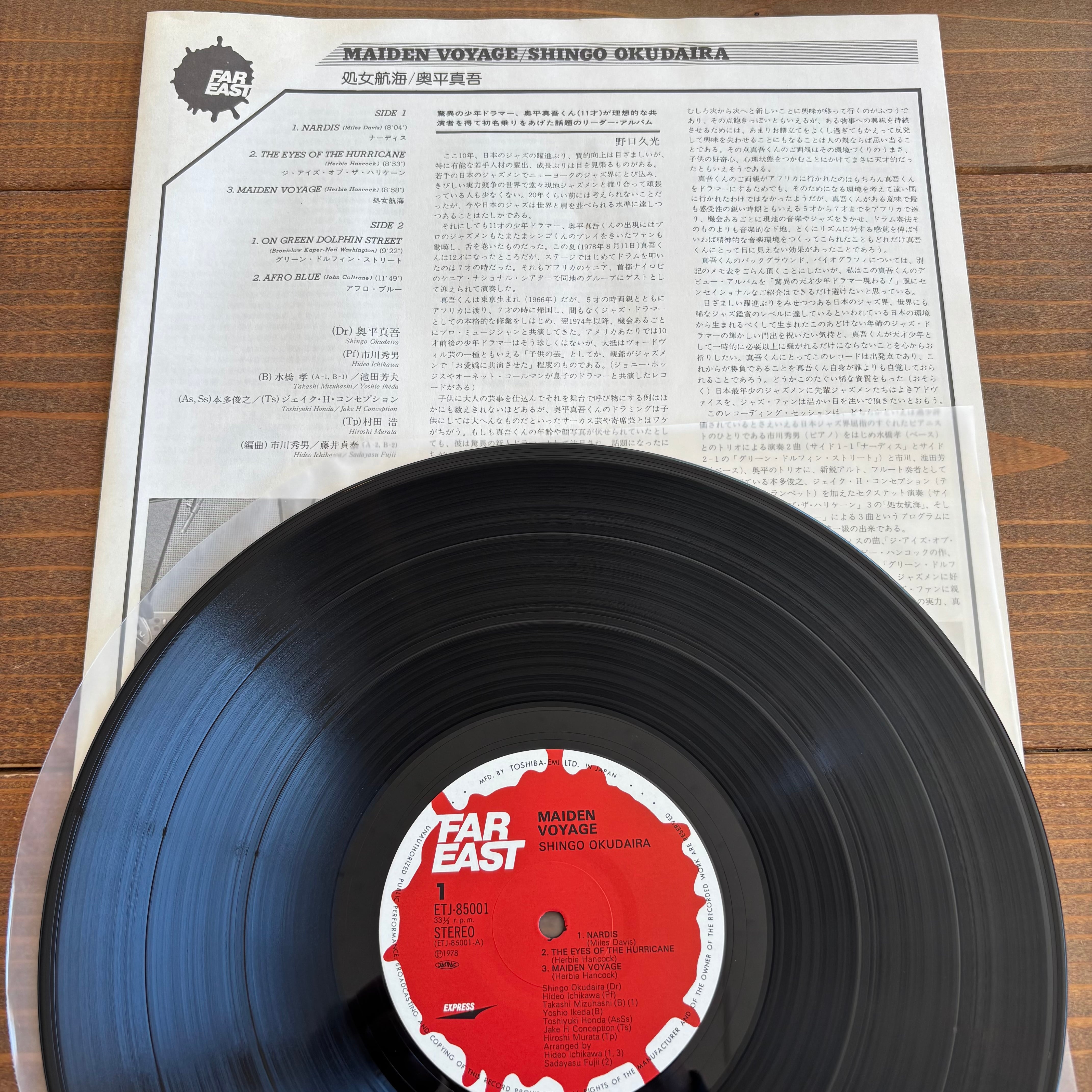ジャズドラマー奥平真吾のデビュー作。なんと当時11歳!市川秀男、水橋孝、池田芳夫、本多俊之など錚々たるメンバーと共にマイルス・デイヴィスの"NARDIS"、ハービー・ハンコックの"MAIDEN VOYAGE"など圧巻のプレー!