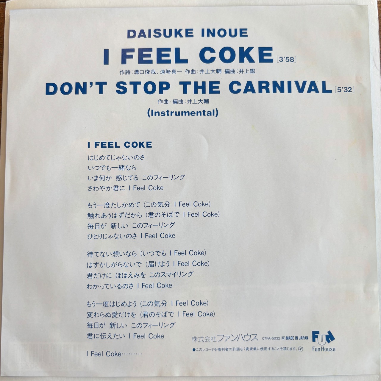 井上大輔 / I FEEL COKE / DON'T STOP THE CARNIVAL