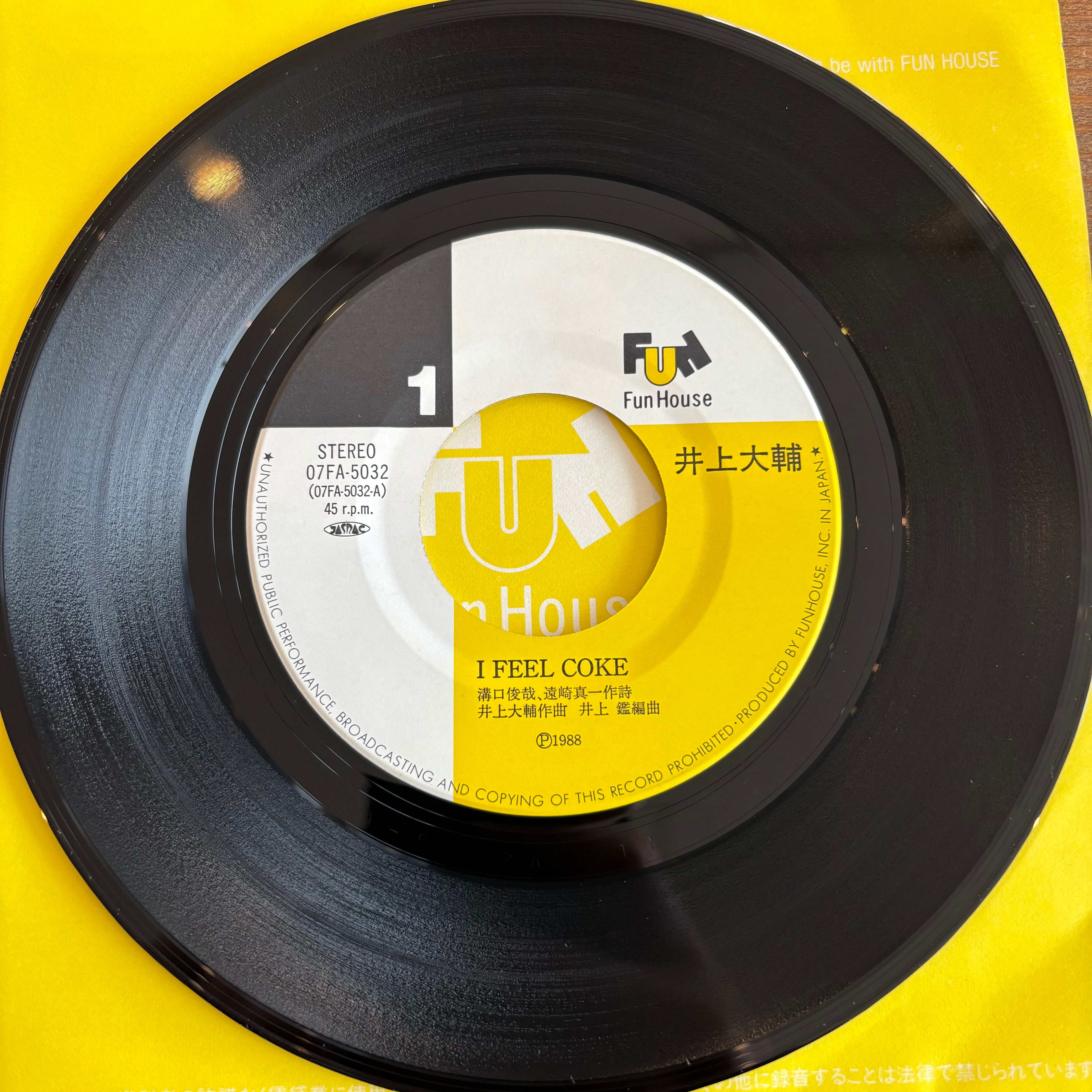コカ・コーラのCMソングを井上鑑編曲でバレアリック・ポップにセルフカバーした"I FEEL COKE"とB面にはフュージョンインスト"DON'T STOP THE CARNIVAL"を収録!