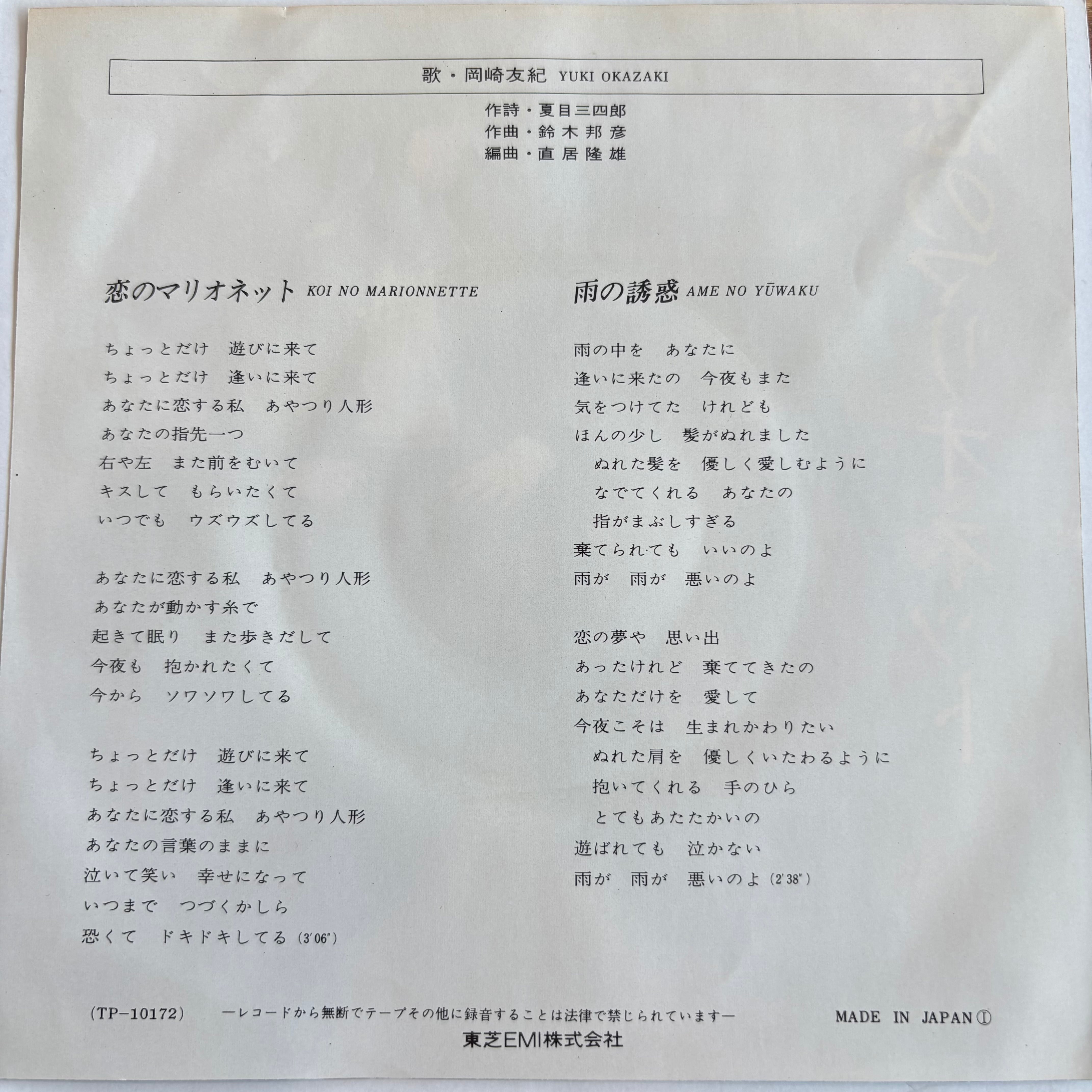 岡崎友紀 / 恋のマリオネット / 雨の誘惑