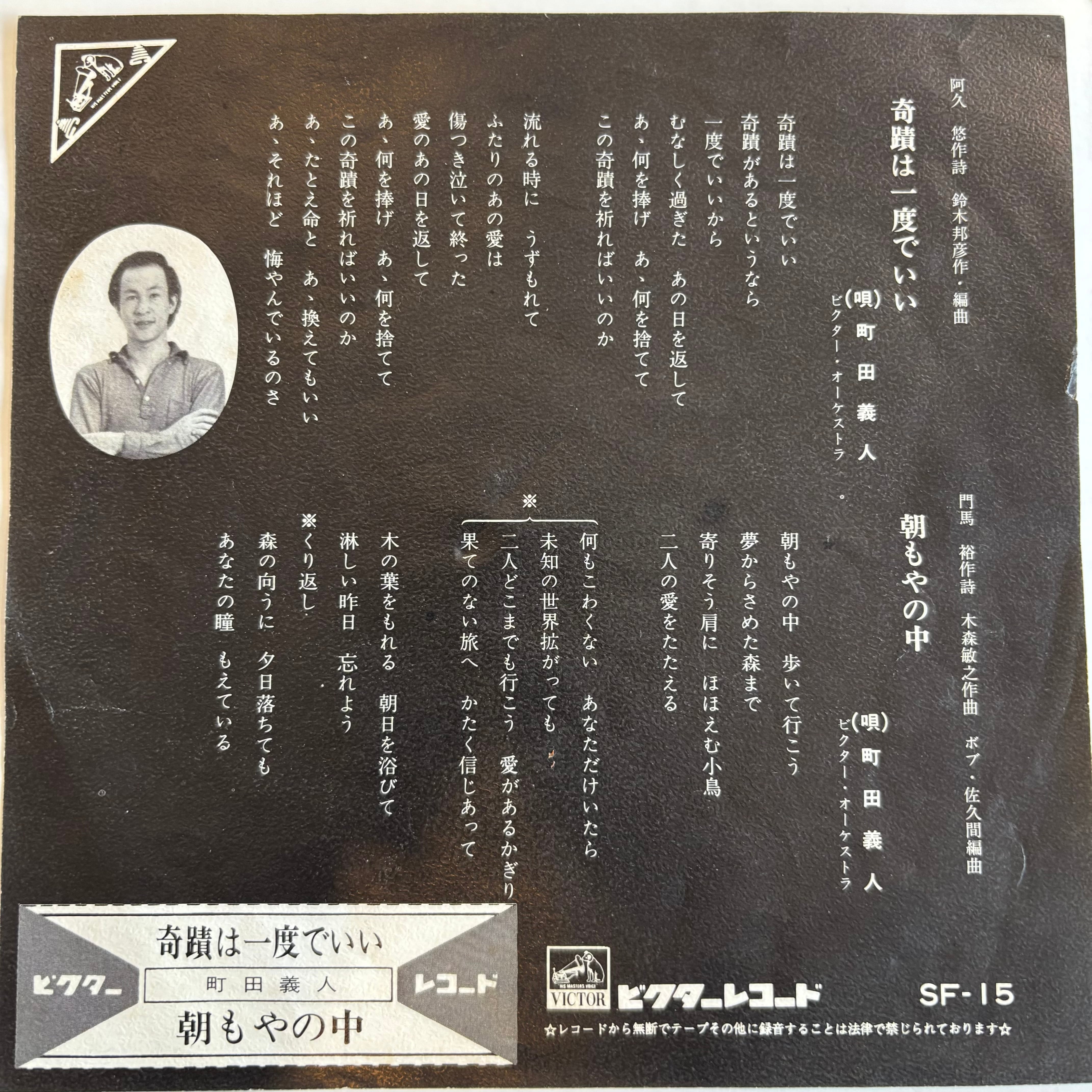 SFシリーズ、鈴木邦彦作曲&編曲のR&B歌謡!町田義人の初期作でレアシングル。センターアダプター付きの見本盤はたまに見かけますがこちらはセンターなしドーナツタイプ正規盤。