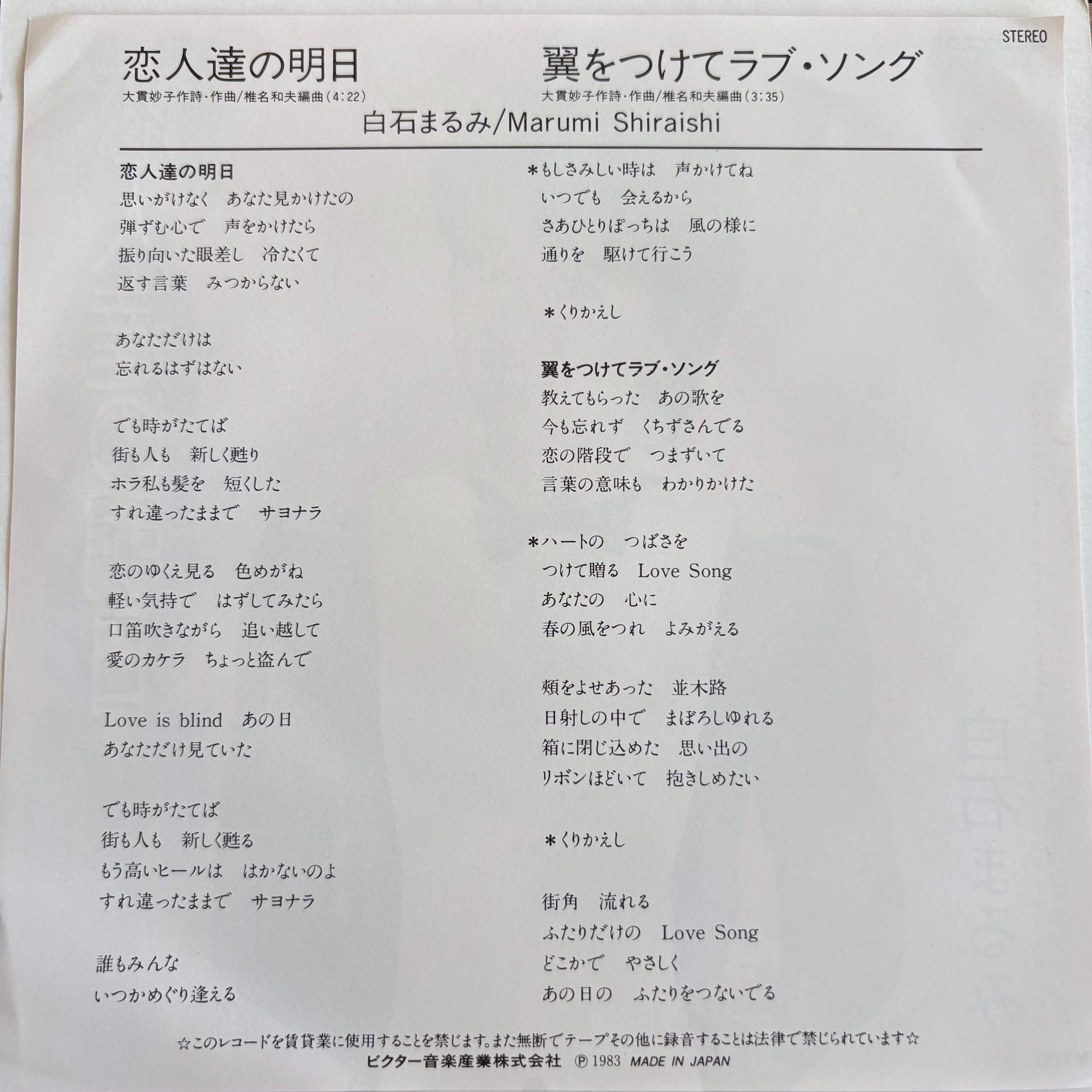 白石まるみ / 恋人達の明日 / 翼をつけてラブ・ソング