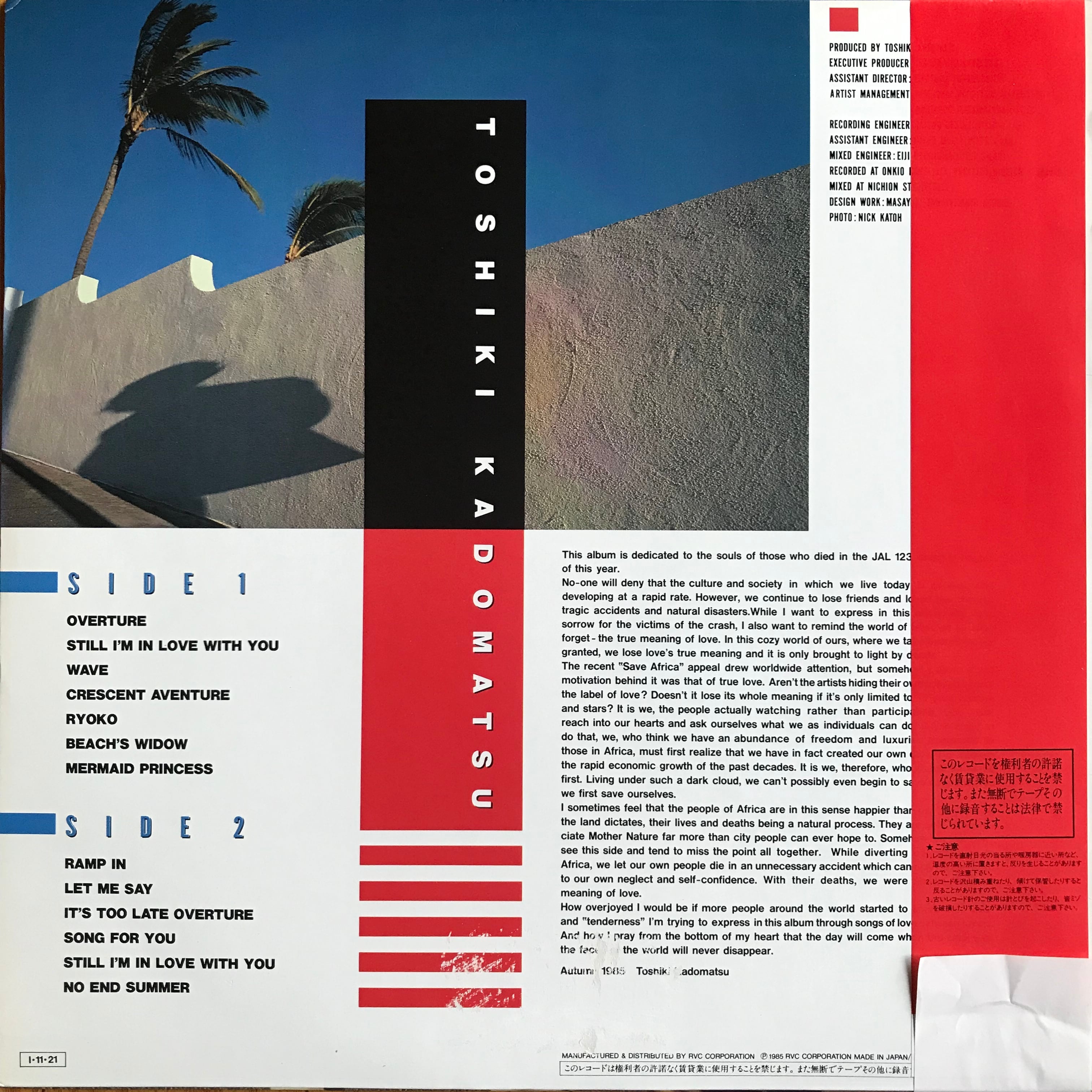 85年にリリースしたスロウ曲のベストアルバム!吉田美奈子や後藤次利がアレンジで参加。"Crescent Aventure"、"Ramp In"、"Still I'm In Love With You"など、City Pop、ライトメロウAORな楽曲を多数収録!