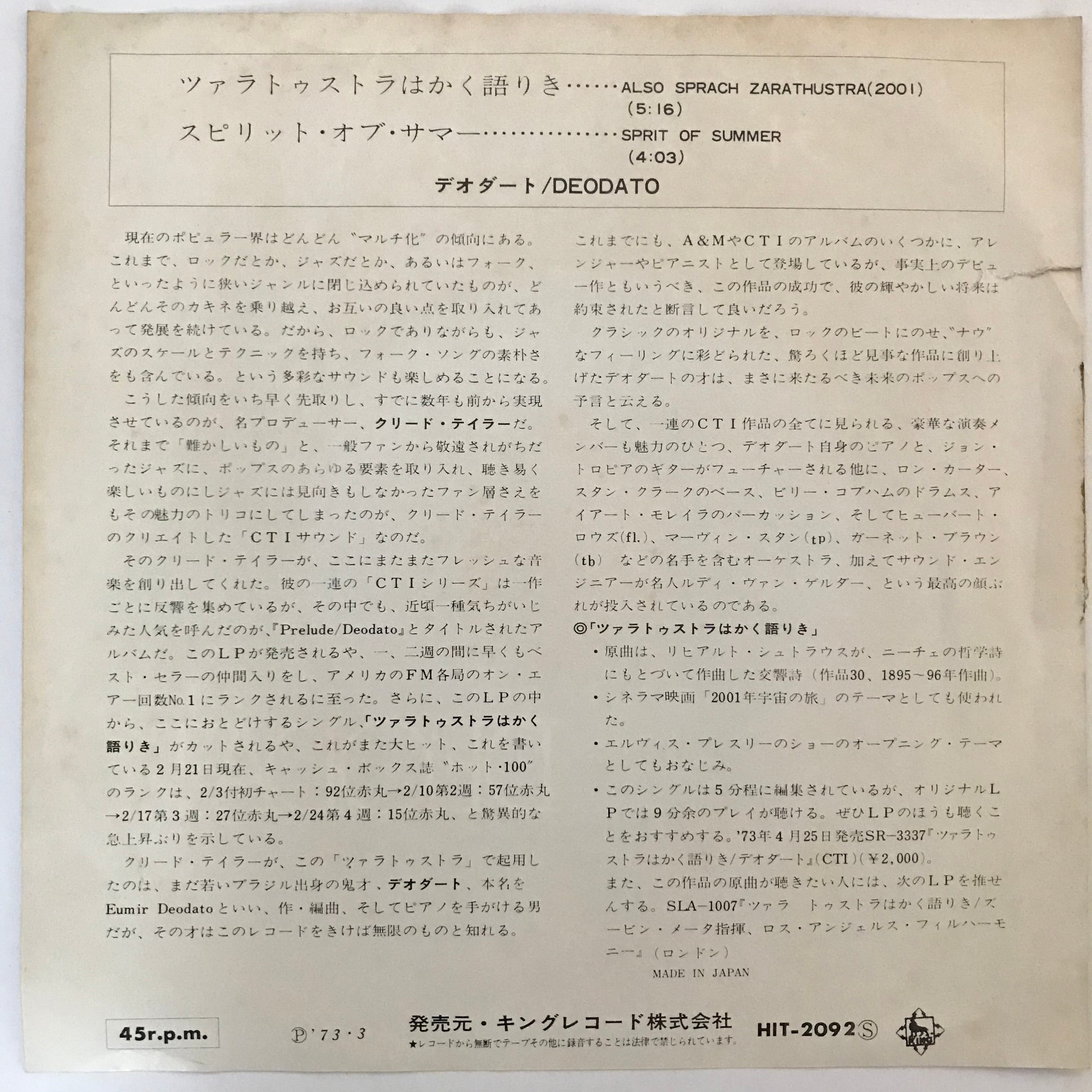 デオダート / ツァラトゥストラはかく語りき