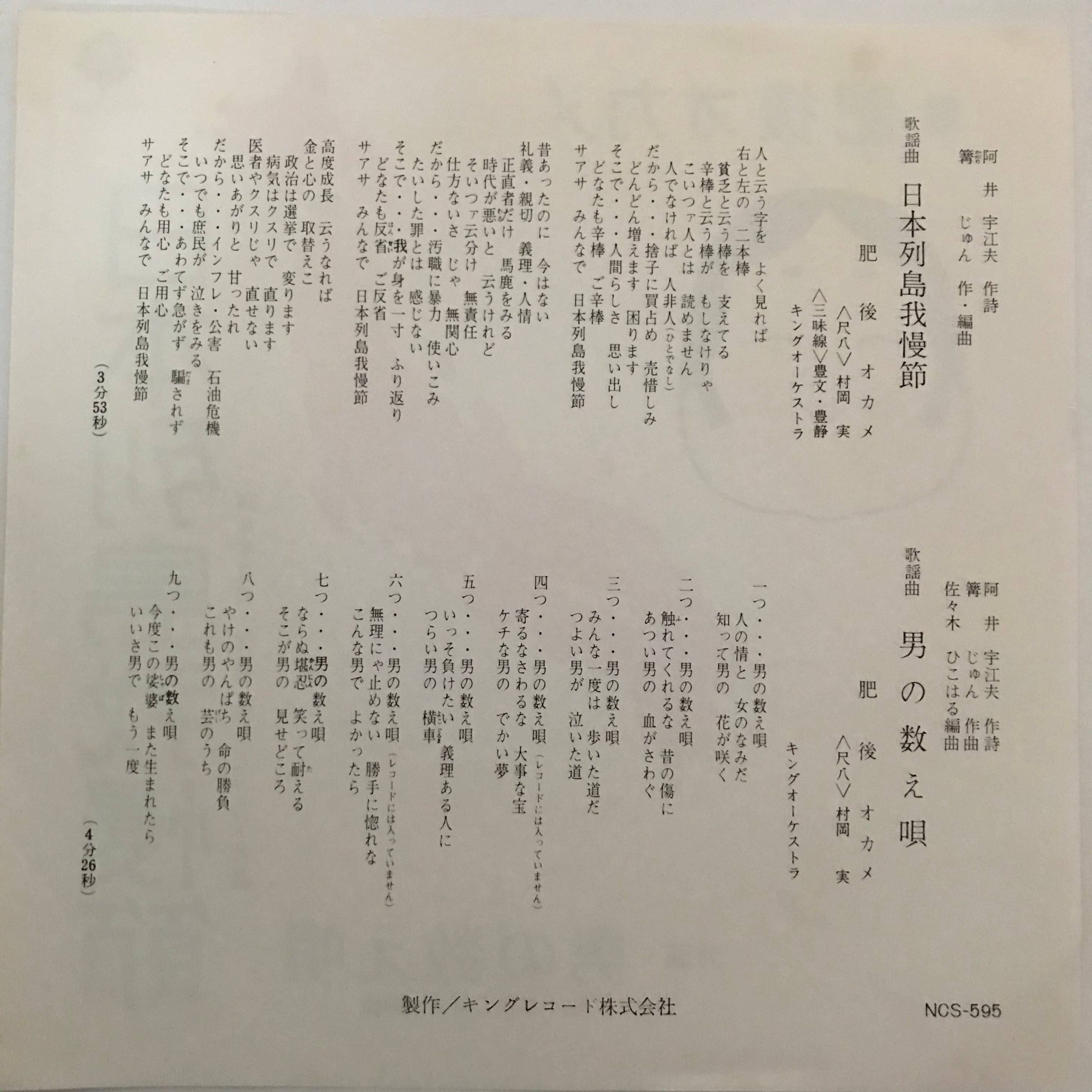 肥後オカメ / 日本列島我慢節 / 男の数え唄