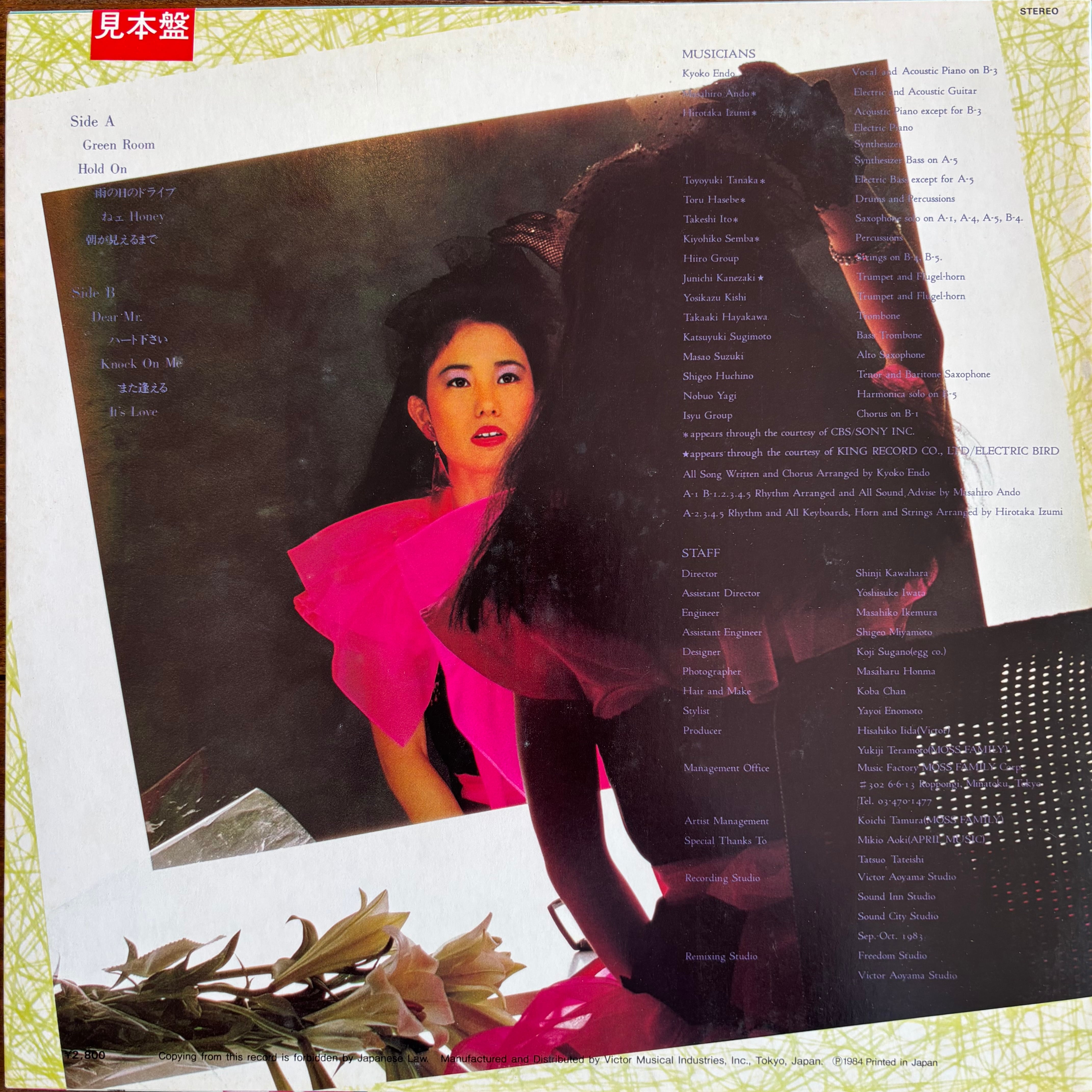シンガーソングライター遠藤京子の2nd アルバム。安藤まさひろ、伊東たけしなど和フュージョン系アーティストが多数参加!アーバンブギー"GREEN ROOM"などを収録!