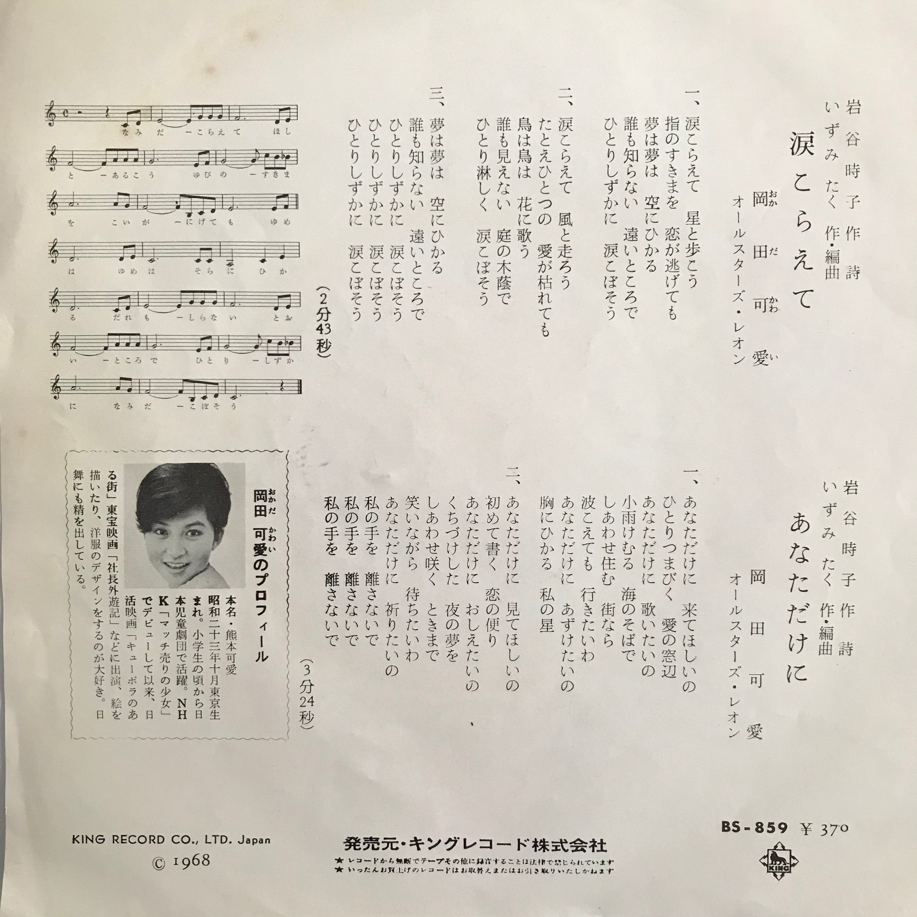 岡田可愛 / 涙こらえて / あなただけに