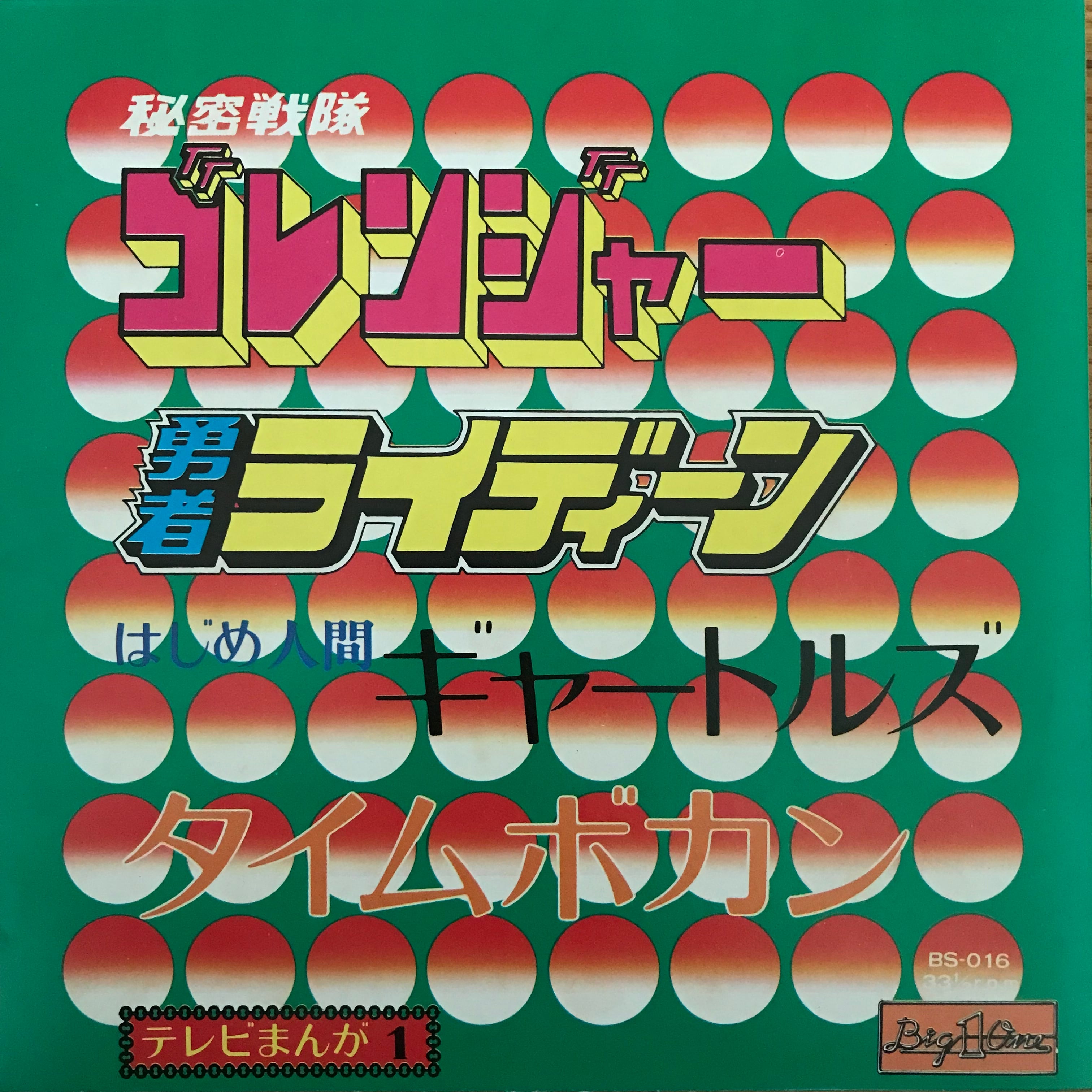秘密戦隊ゴレンジャー、勇者ライディーン、はじめ人間ギャートルズ、タイムボカンの4曲を収録したコンパクト盤。ロイヤルサウンドオーケストラの演奏、あけぼの児童合唱団による歌唱の所謂パチもんですがなかなか良い味出してます。