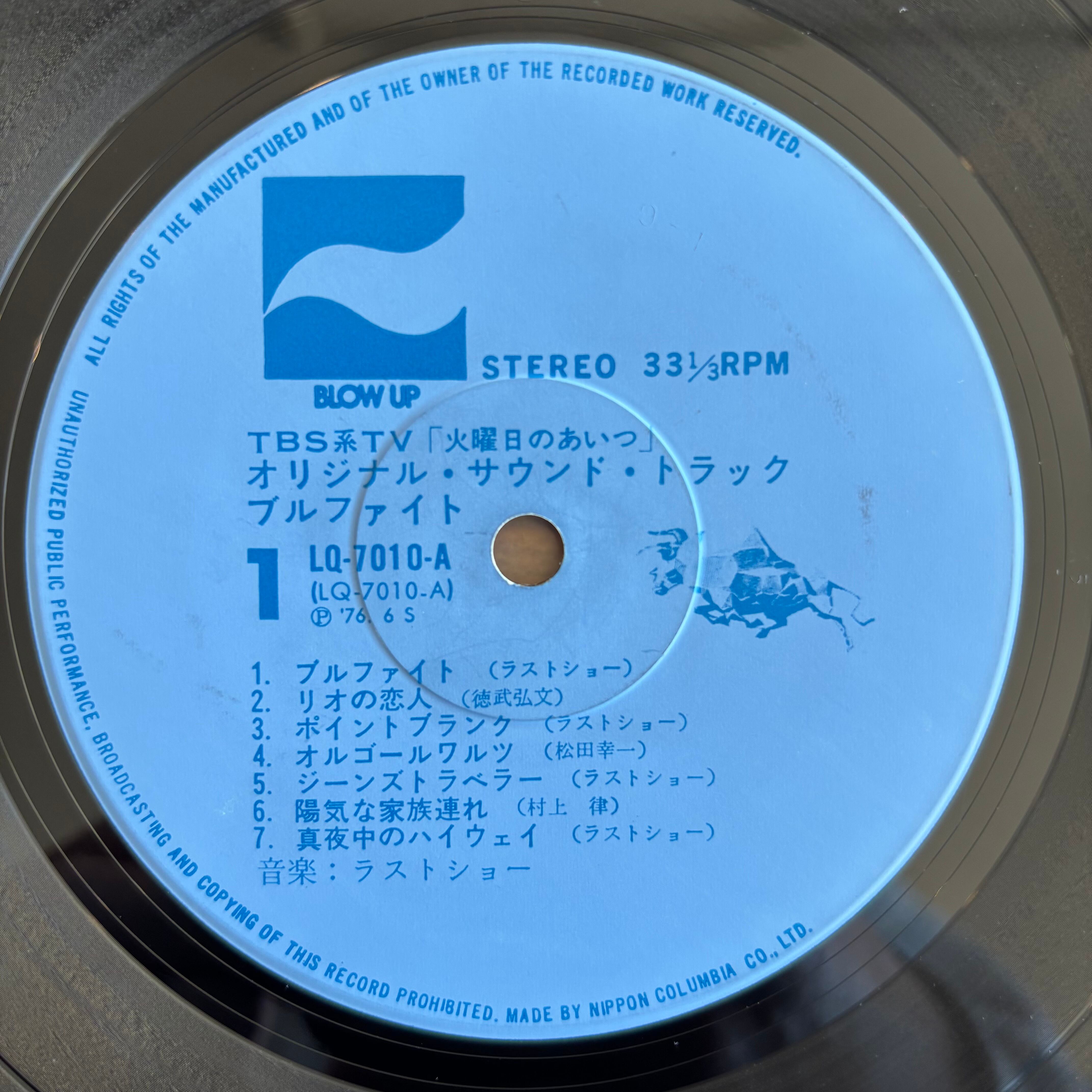 TBSにて放送されていた『火曜日のあいつ』のサウンド・トラック。泉谷しげるのバックバンドだったラストショウが音楽を担当。タイトル曲の"ブルファイト"や"ポイントブラック"など疾走感抜群な和物レアグルーヴ曲収録!