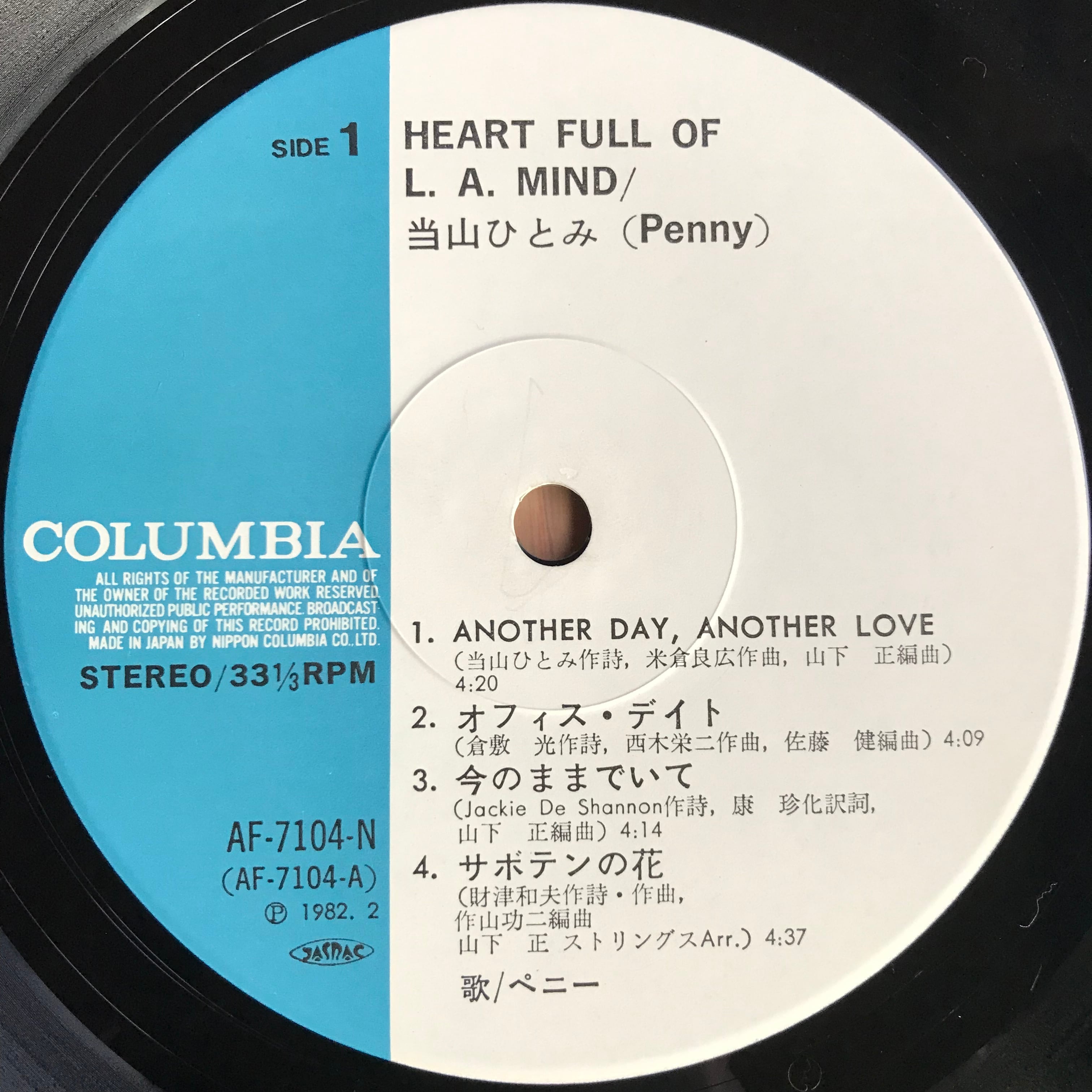 ペニー名義の当山ひとみ82年セカンドアルバム!芳野藤丸、松原正樹、村上"ポンタ"秀一、ペッカーら錚々たるメンバーがバックを担当。財津和夫の名曲 "サボテンの花"のカバーなどを収録!