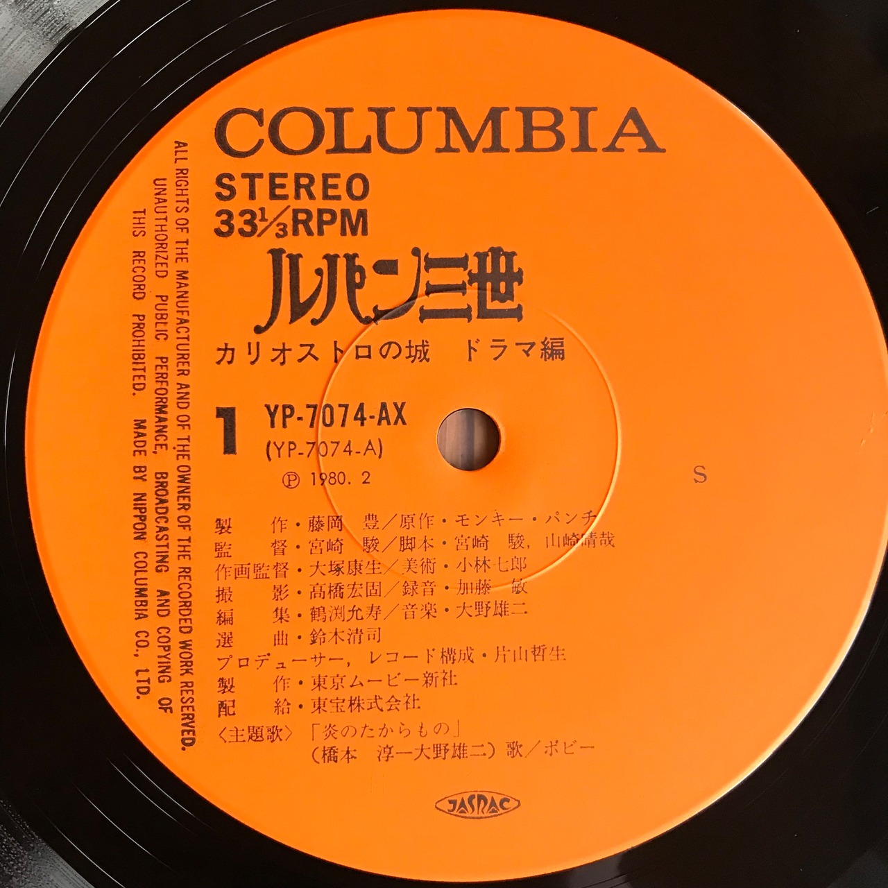 ルパン三世の映画『カリオストロの城』の'80サントラ&セリフ盤!音楽を手掛けるのは大野雄二&エクスプロージョン・バンド!