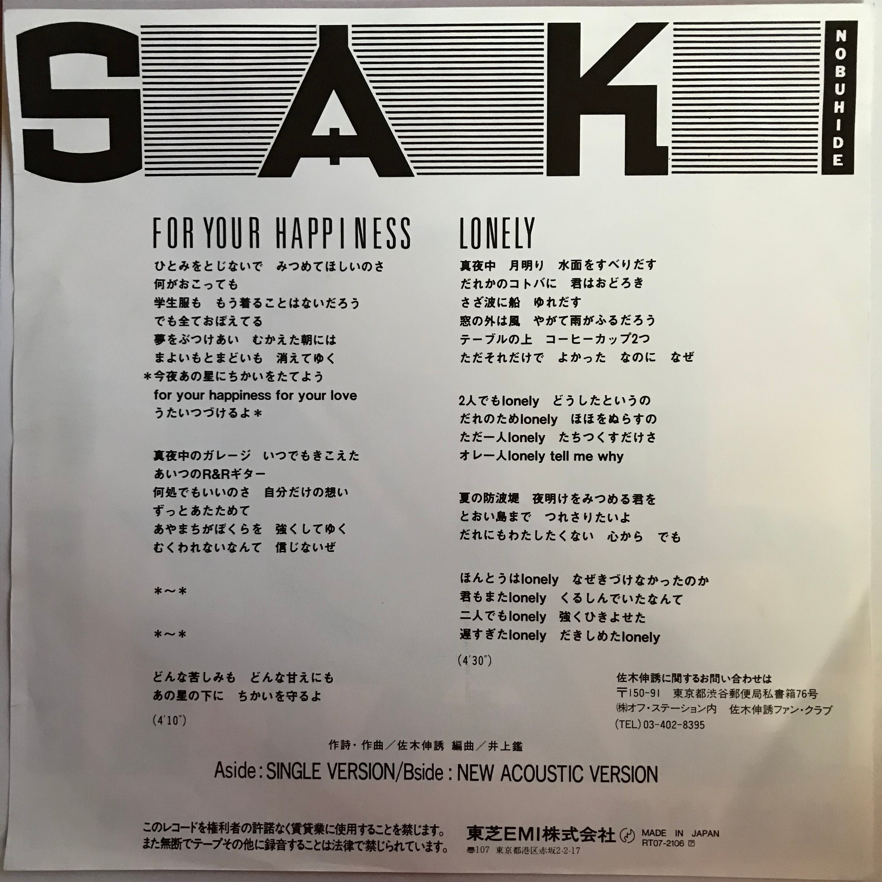 佐木伸誘 / FOR YOUR HAPPINESS / LONELY