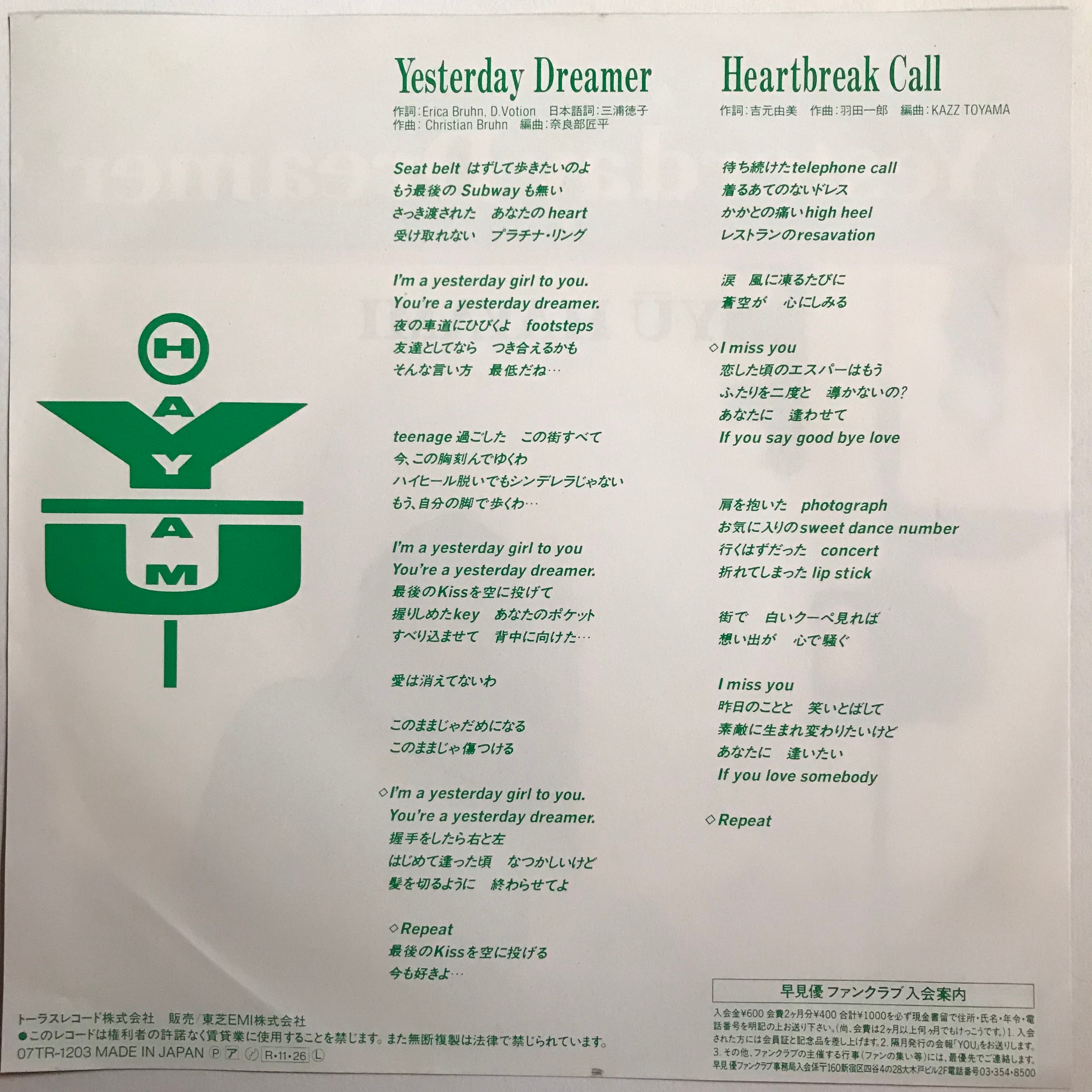 早見優 / YESTERDAY DREAMER / HEARTBREAK CALL
