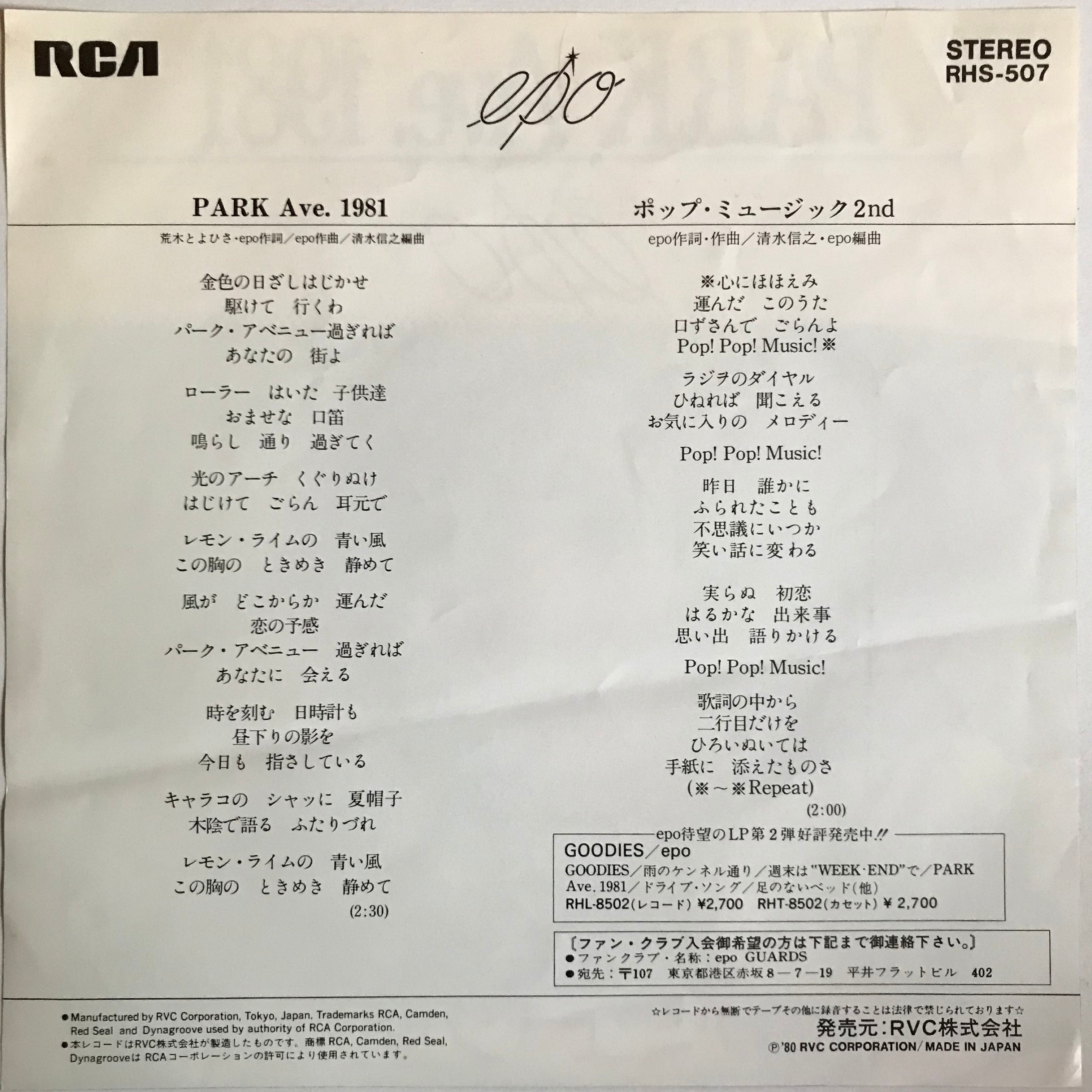 EPO / PARK Ave.1981 / ポップ・ミュージック 2nd