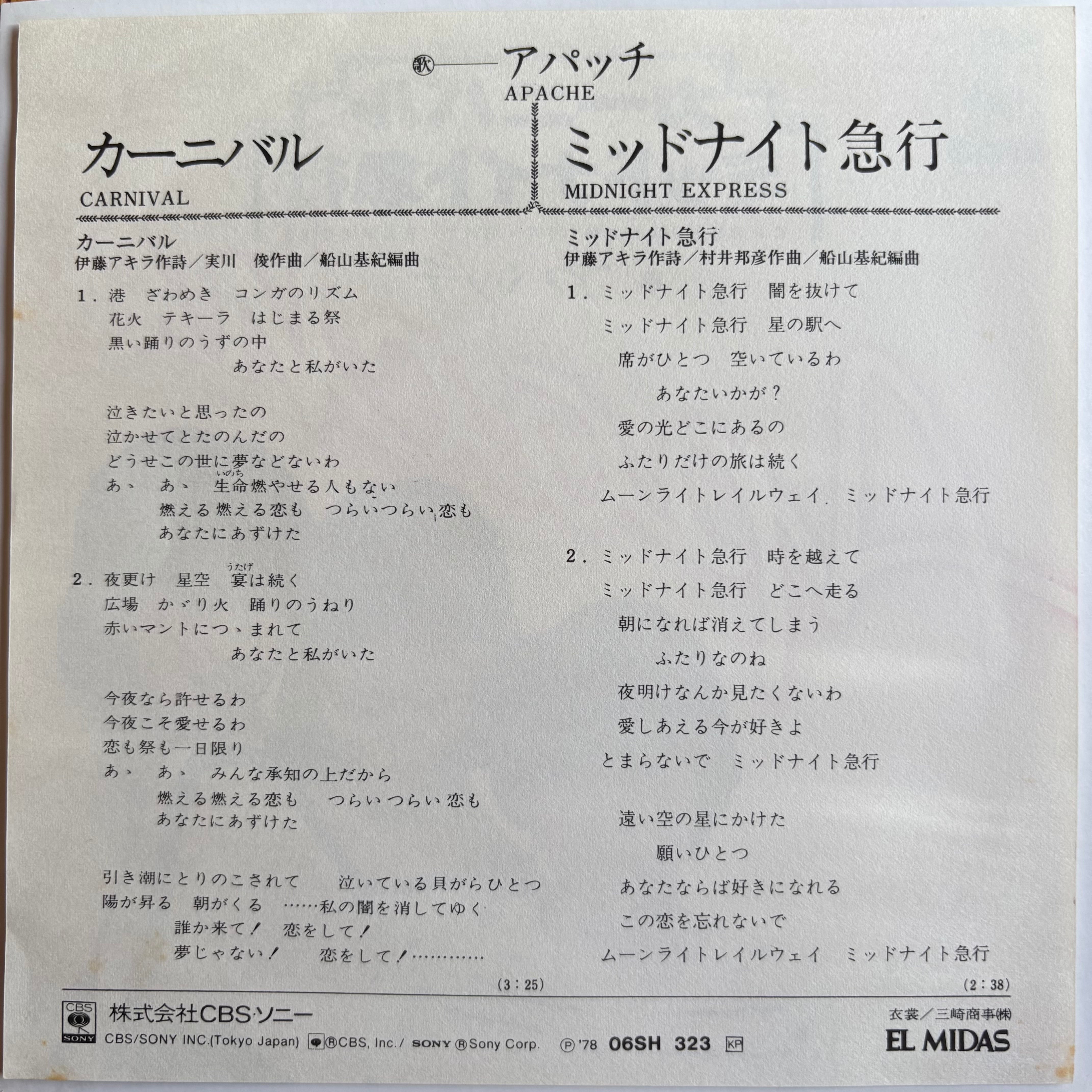 アパッチ / カーニバル / ミッドナイト急行