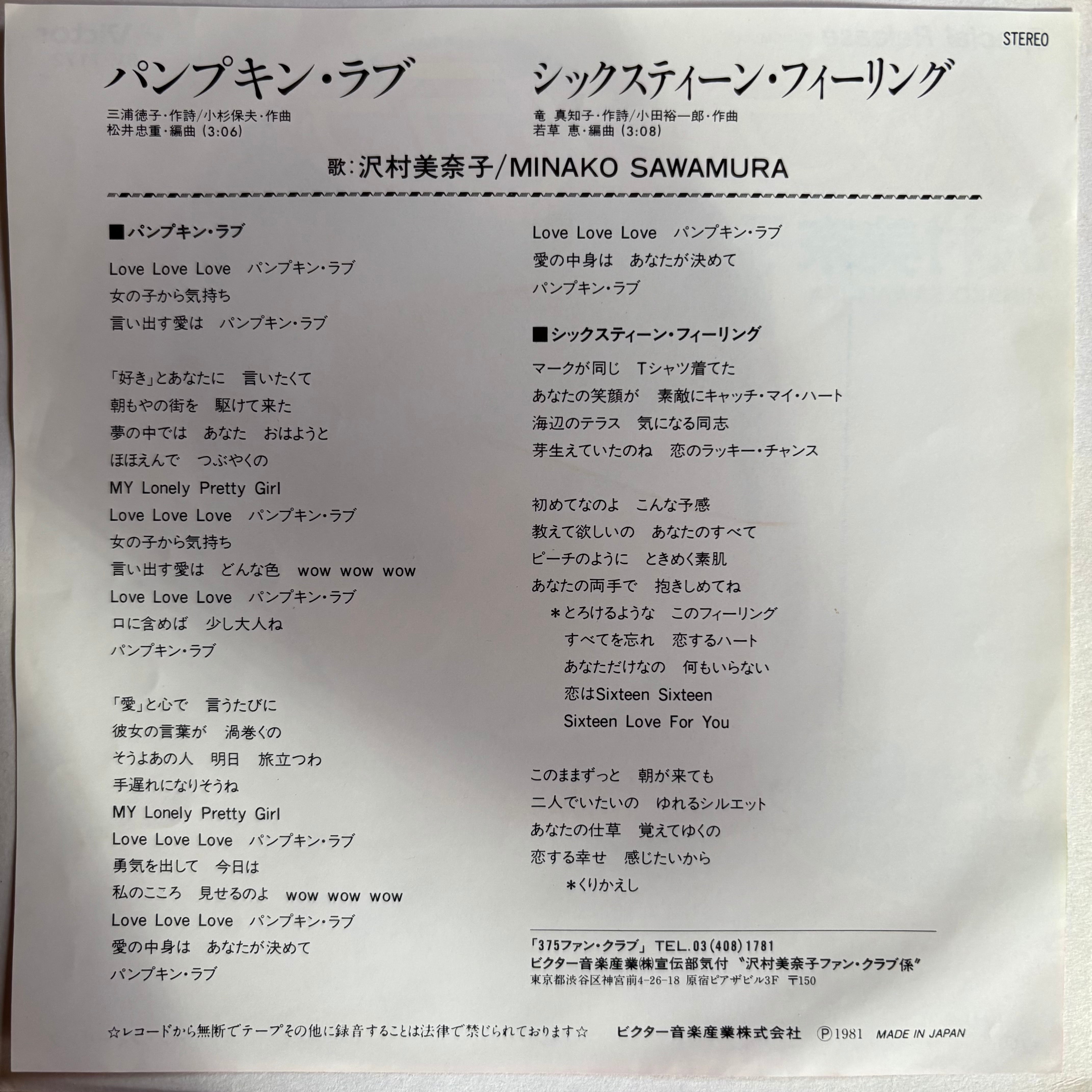 沢村美奈子 / パンプキン・ラブ / シックスティーン・フィーリング